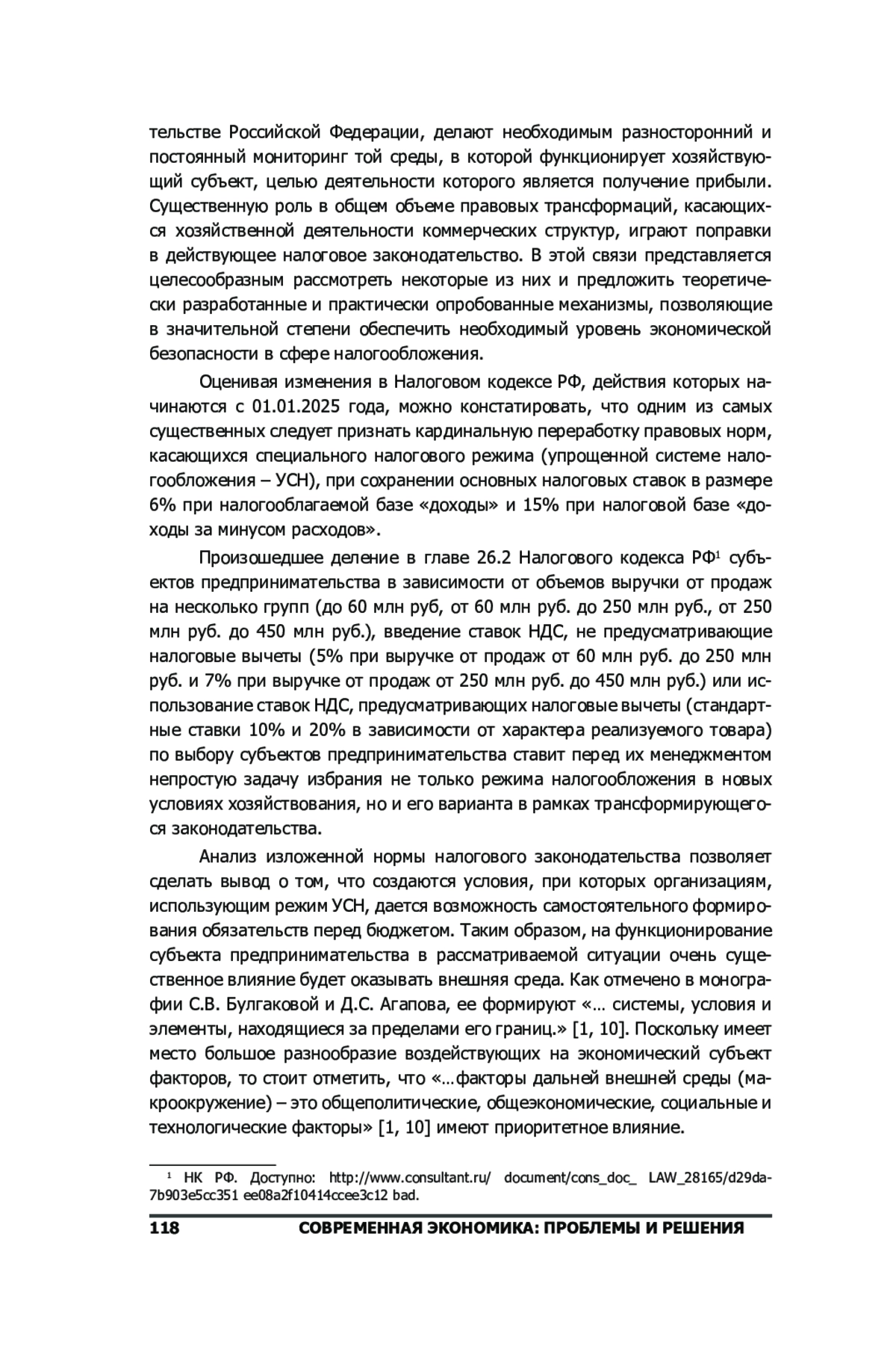 Оценивая изменения в Налоговом кодексе РФ, действия которых начинаются с 01.01.2025 года, можно констатировать, что одним из самых существенных следует признать кардинальную переработку правовых норм, касающихся специального налогового режима (упрощенной системе налогообложения – УСН), при сохранении основных налоговых ставок в размере 6% при налогооблагаемой базе «доходы» и 15% при налоговой базе «доходы за минусом расходов». Произошедшее деление в главе 26.2 Налогового кодекса РФ1 субъектов предпринимательства в зависимости от объемов выручки от продаж на несколько групп (до 60 млн руб, от 60 млн руб. до 250 млн руб., от 250 млн руб. до 450 млн руб.), введение ставок НДС, не предусматривающие налоговые вычеты (5% при выручке от продаж от 60 млн руб. до 250 млн руб. и 7% при выручке от продаж от 250 млн руб. до 450 млн руб.) или использование ставок НДС, предусматривающих налоговые вычеты (стандартные ставки 10% и 20% в зависимости от характера реализуемого товара) по выбору субъектов предпринимательства ставит перед их менеджментом непростую задачу избрания не только режима налогообложения в новых условиях хозяйствования, но и его варианта в рамках трансформирующегося законодательства.