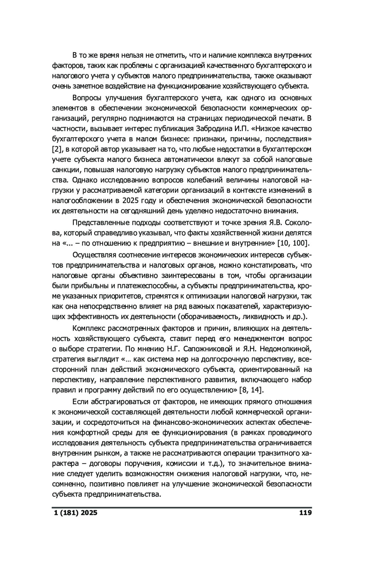 2. 	Забродин И.П. Низкое качество бухгалтерского учета в малом бизнесе: признаки, причины, последствия // Современная экономика: проблемы и решения, 2024, по. 9 (177), с. 70-84. EDN: DLXRVP