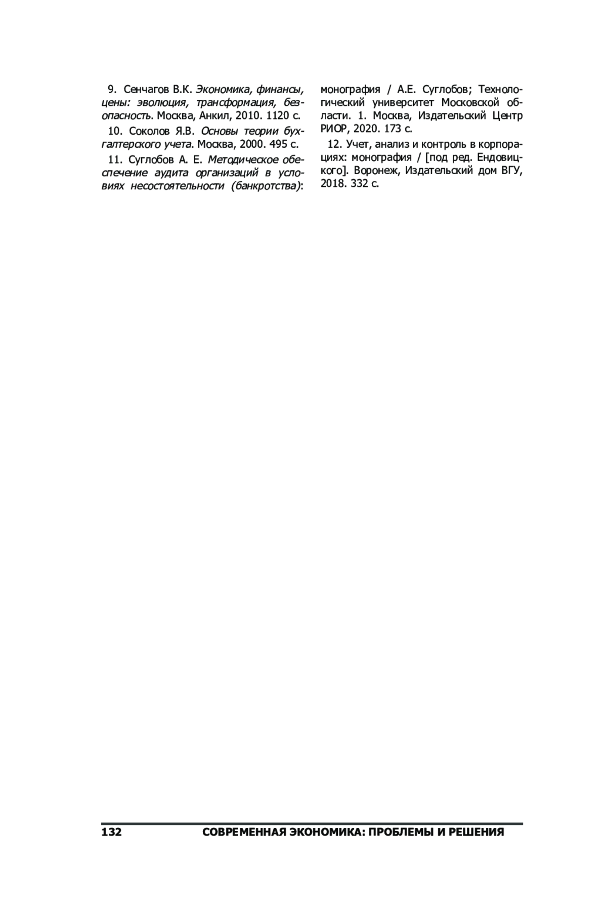 9. 	Сенчагов В.К. Экономика, финансы, цены: эволюция, трансформация, безопасность. Москва, Анкил, 2010. 1120 с. EDN: QUAEIV