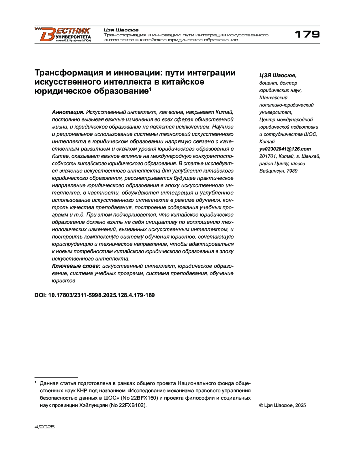 - 10.17803/2311-5998.2025.128.4.179-189