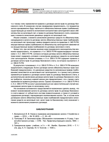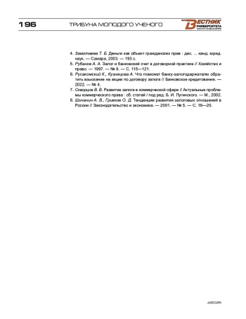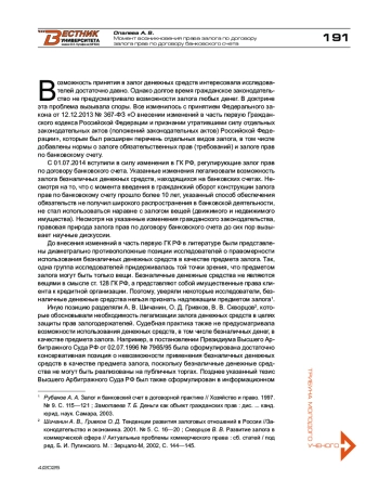 5. Рубанов А. А. Залог и банковский счет в договорной практике // Хозяйство и право. - 1997. - № 9. - С. 115-121.