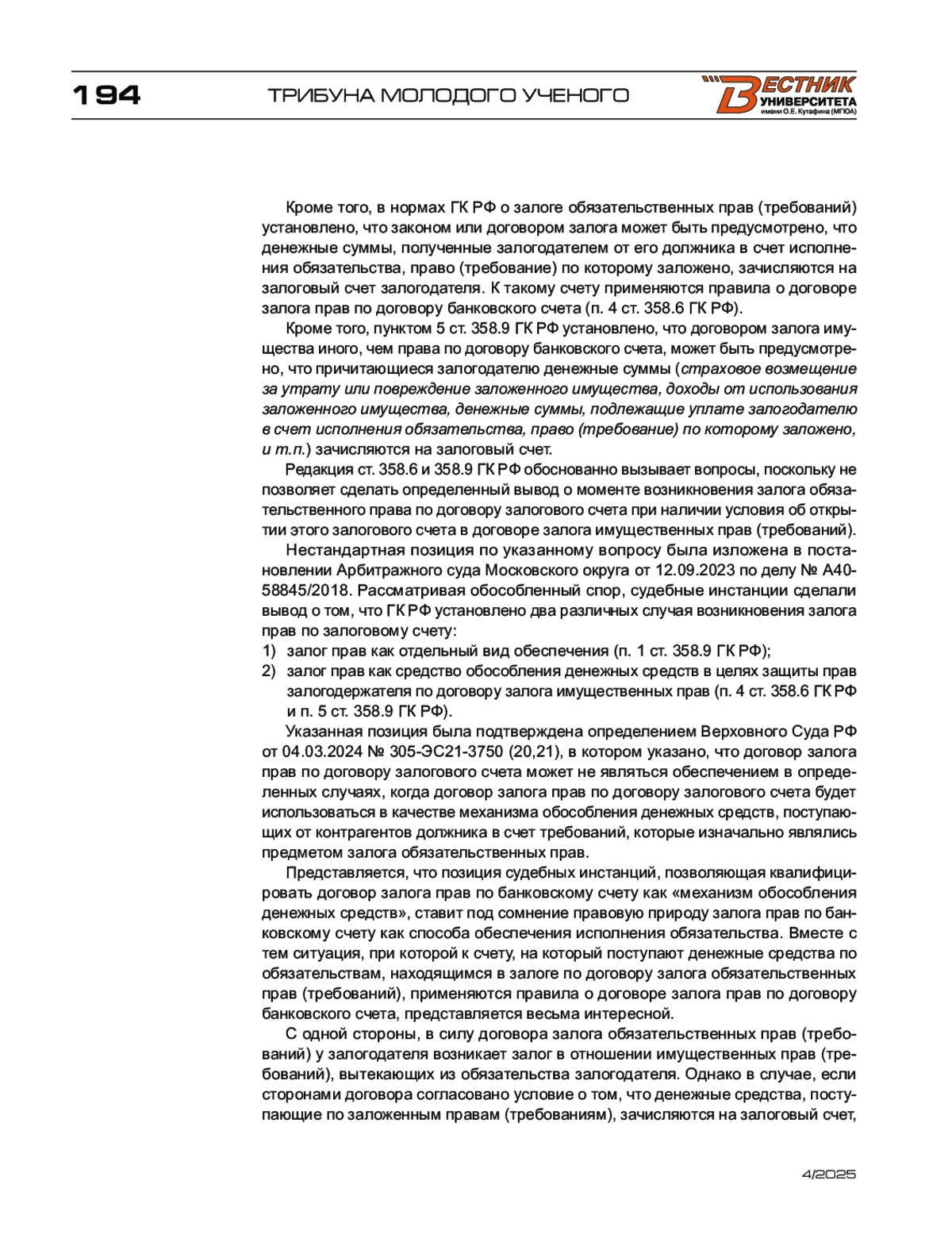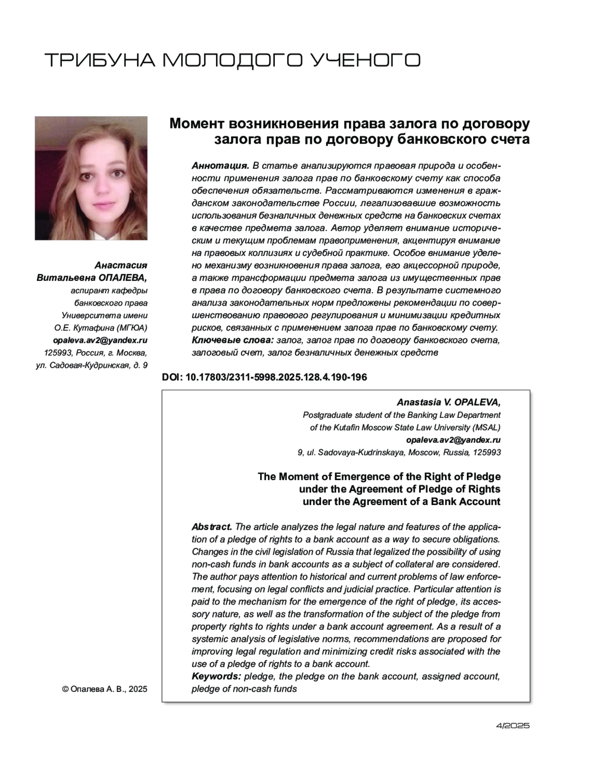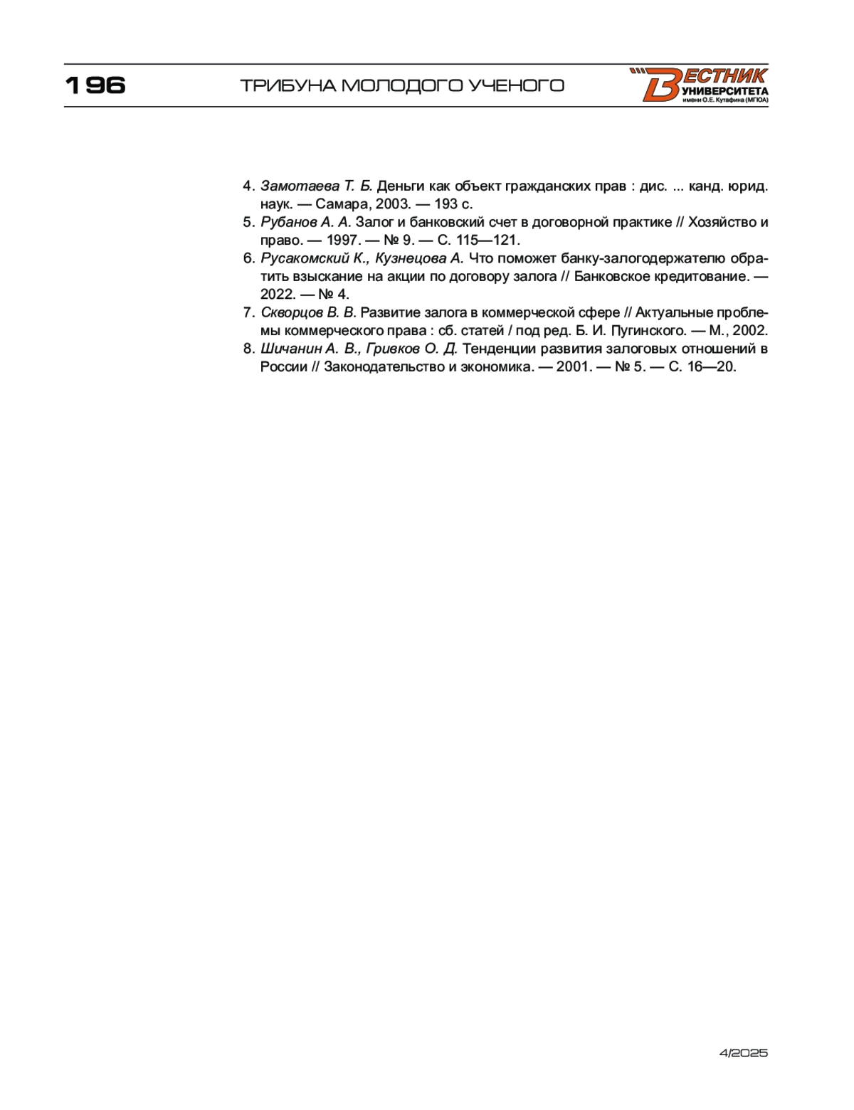 - 10.17803/2311-5998.2025.128.4.190-196