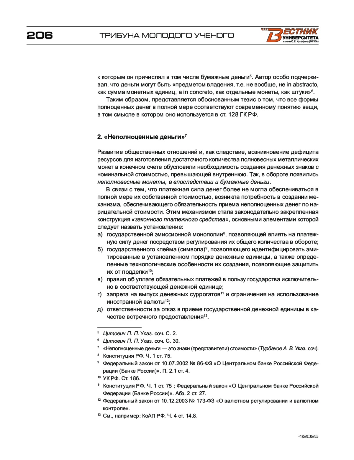 10. Пшеничников В. П. О различиях и противоречиях в трактовках форм и видов денег в современной денежной теории // Известия Санкт-Петербургского государственного университета. - 2018. - № 5 (113).
