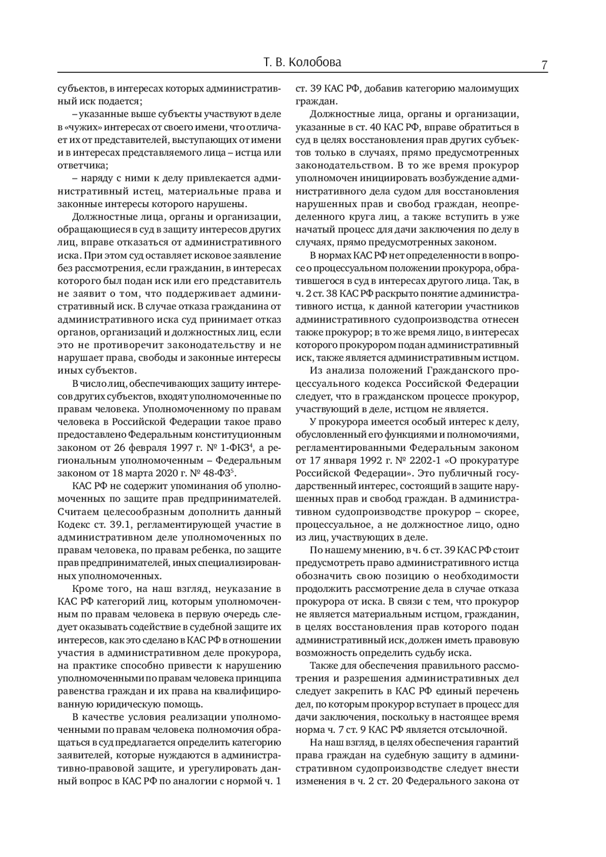 КОЛОБОВА Т. В. ЗАЩИТА НАРУШЕННЫХ ИЛИ ОСПАРИВАЕМЫХ ПРАВ, СВОБОД И ЗАКОННЫХ ИНТЕРЕСОВ ГРАЖДАН И ОРГАНИЗАЦИЙ ОРГАНАМИ ПУБЛИЧНОЙ ВЛАСТИ И ДОЛЖНОСТНЫМИ ЛИЦАМИ // ЖУРНАЛ АДМИНИСТРАТИВНОГО СУДОПРОИЗВОДСТВА. 2023. № 2