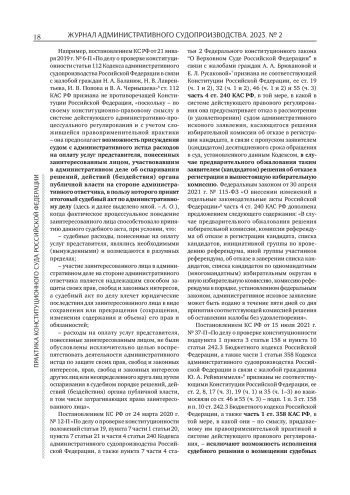 Статья: ПРАВОВЫЕ ПОЗИЦИИ КОНСТИТУЦИОННОГО СУДА РОССИИ И ИХ ПРОЯВЛЕНИЕ В АДМИНИСТРАТИВНОМ СУДОПРОИЗВОДСТВЕ (2023)