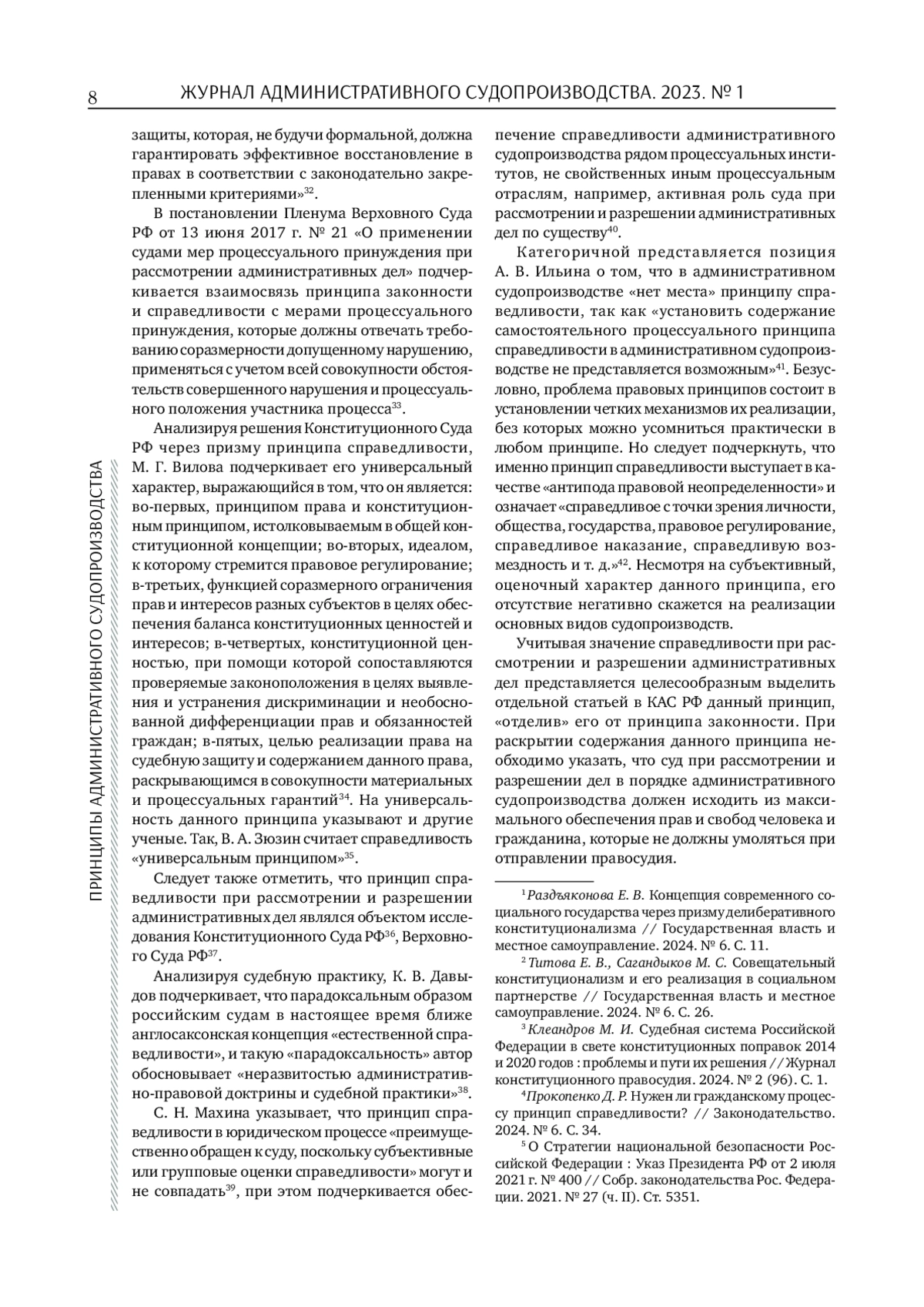 30. 	Зюзин В. А. О системности и взаимосвязанности судебных административно-процессуальных принципов // Административное право и процесс. 2023. № 1. С. 39-45. EDN: SGWZLK