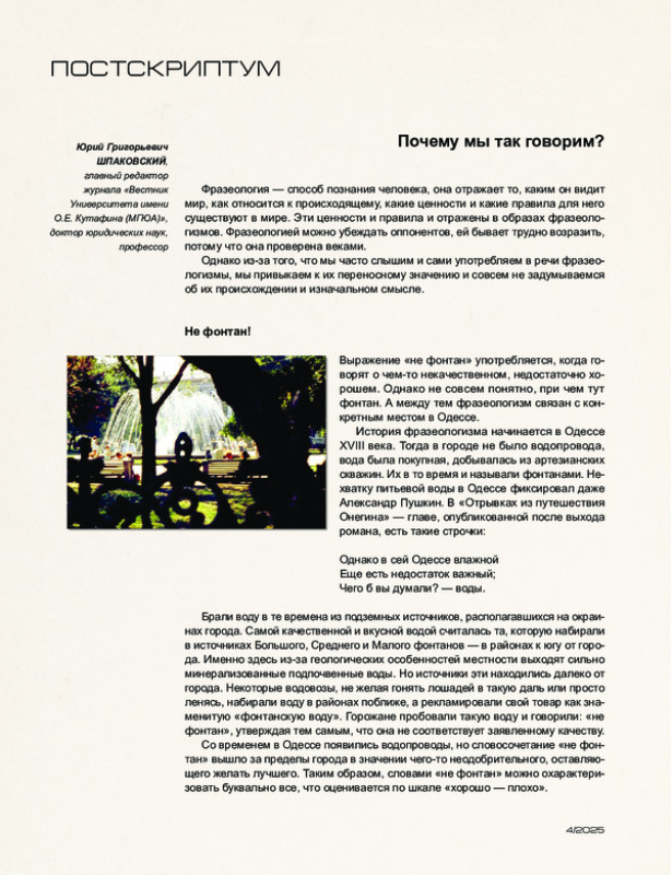 Для цитирования: Шпаковский Ю. Г. Почему мы так говорим? Вестник Университета имени О. Е. Кутафина (МГЮА). 2025;1(4):236-239.
