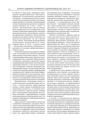 14. 	Тихомиров Ю. А. Административное усмотрение и право // Журнал российского права. 2000. № 4. С. 72. EDN: ZQLOMP