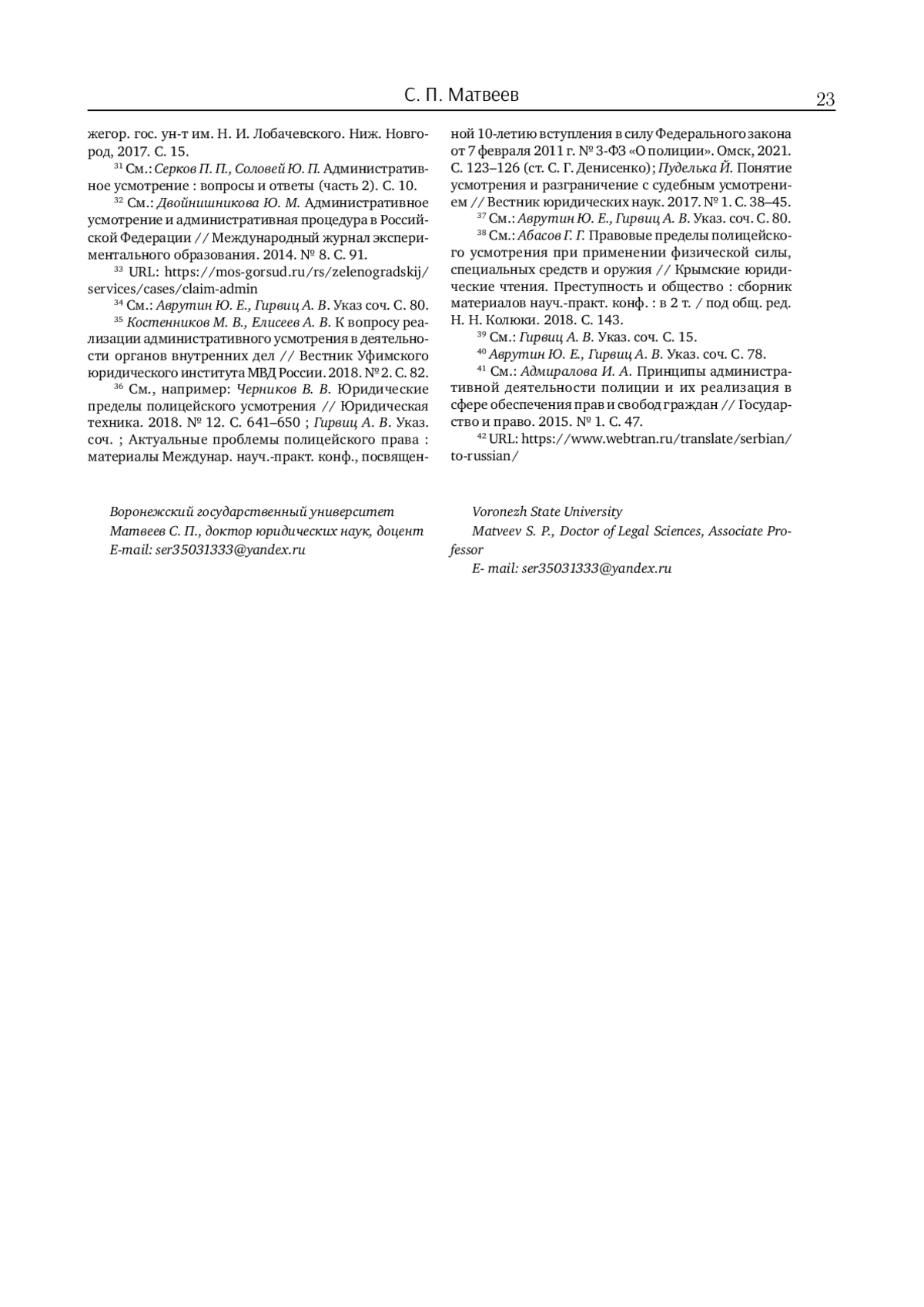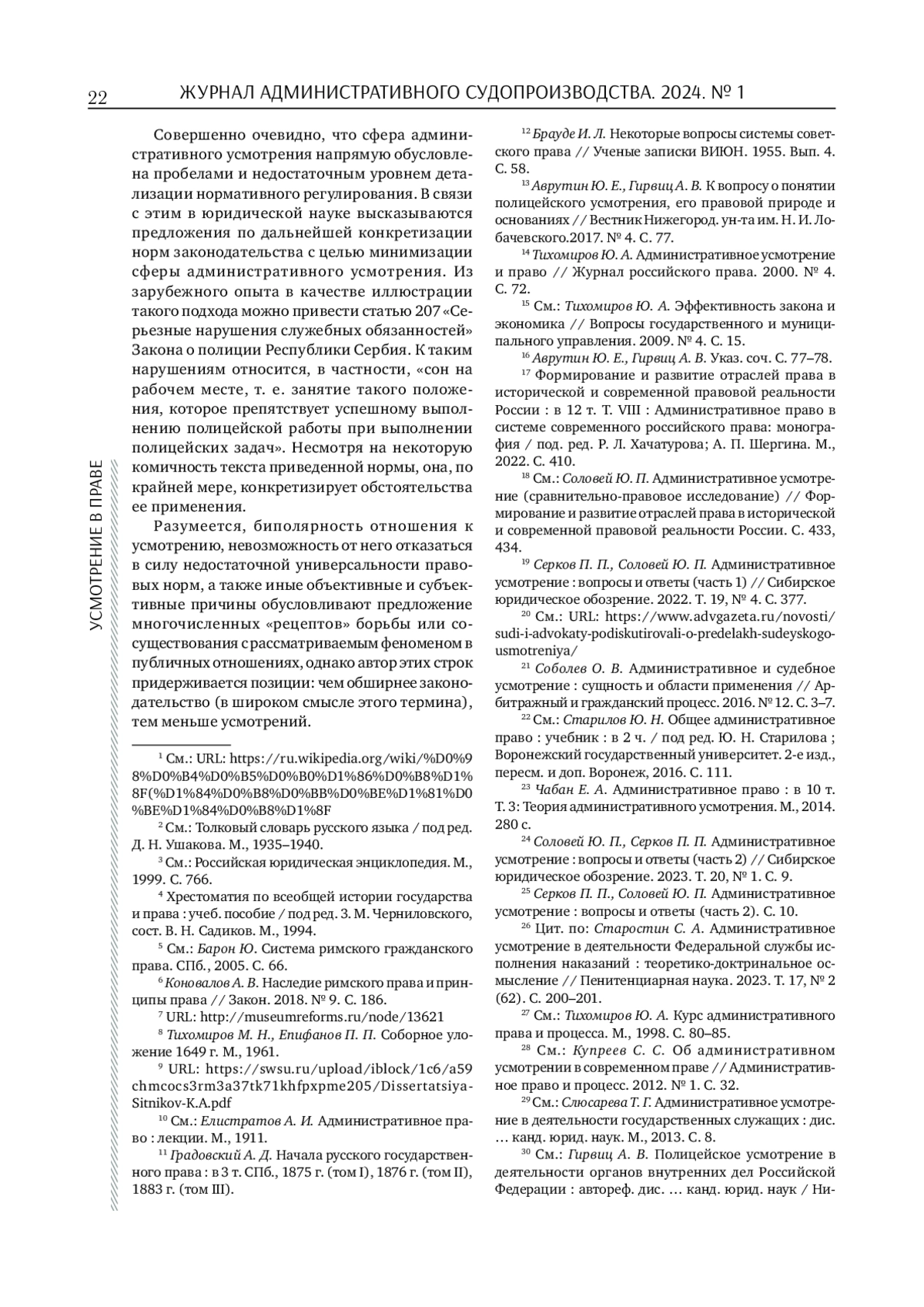 23. 	Соловей Ю. П., Серков П. П. Административное усмотрение: вопросы и ответы (часть 2) // Сибирское юридическое обозрение. 2023. Т. 20, № 1. С. 9. EDN: NZWFRB