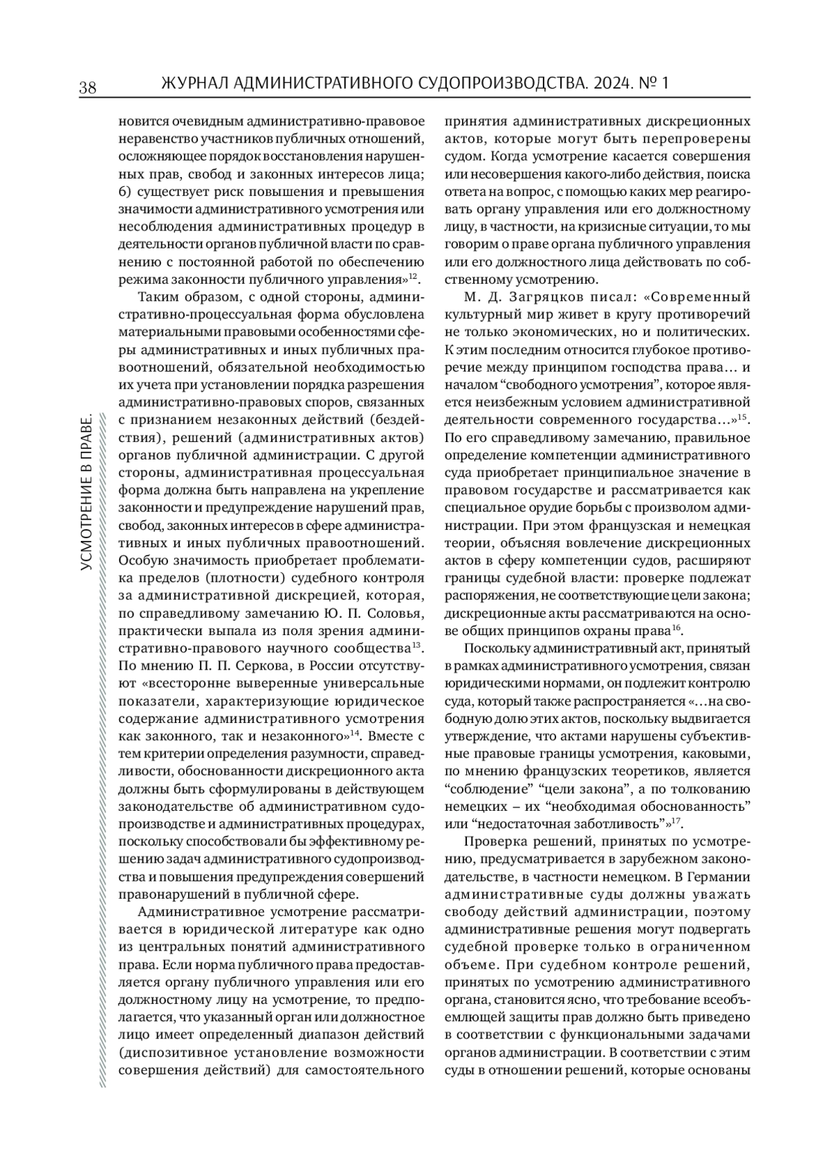 24. 	Соловей Ю. П. Подлежит ли судебной проверке целесообразность дискреционного акта // Ежегодник публичного права 2017: Усмотрение и оценочные понятия в административном праве. М., 2017. С. 81. EDN: ZVXSOX