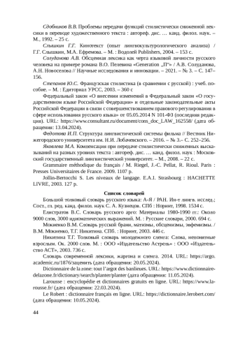 4. 	Гаврилов Л.А. Стилистика французского языка: Учебник / Л.А. Гаврилов, Р. И. Зарипов. - М.: ФЛИНТА, 2022. - 292 с.