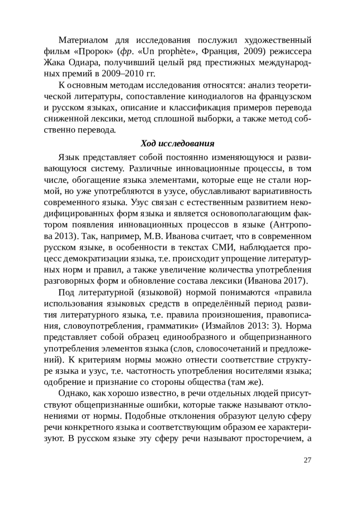 10. 	Иванова М.В. Расширение литературной нормы и его исторические основания // Вестник РУДН. Серия: Теория языка. Семиотика. Семантика. - 2017. -№ 1. - С. 124-129.
