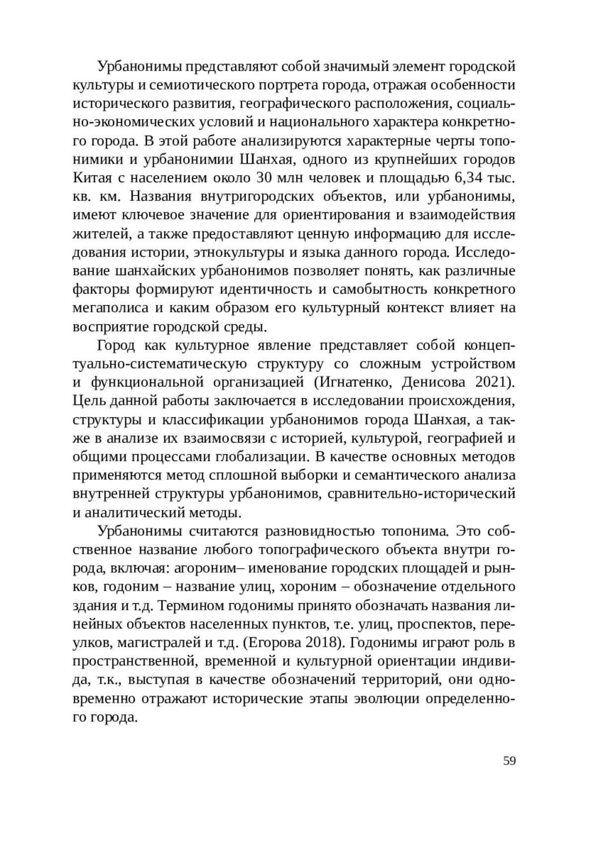 Данное исследование посвящено анализу урбанонимов и годонимов как этнокультурному феномену и их использованию в лингвистическом ландшафте города Шанхая. Цель работы - рассмотреть происхождение и структуру шанхайских номинаций, классифицировать урбанонимы и годонимы, а также проанализировать их этнокультурные особенности. Актуальность данного исследования обусловлена тем, что шанхайские убранонимы и годонимы как часть топонимики выступают параметром китайской идентичности и входят в культурно-исторический, географический, социально-экономический и др. дискурсы. В ходе исследования применялись методы сплошной выборки и семантического контент-анализа, сравнительно-исторический и аналитический методы. Доказывается, что изучение топонимики позволяет понять, как различные факторы формируют идентичность и самобытность конкретного мегаполиса и каким образом его культурно-исторический контекст оказывает влияние на восприятие городской среды. This article is devoted to the linguistic and cultural study of the linguistic landscape of Shanghai. It aims at analyzing street names in Shanghai, which have been studied poorly. To achieve it, a descriptive method, a comparative-historical method, a comparative-analytical method and linguistic value-oriented methods are used. The origin of Shanghai urbanonyms as well as their historical, cultural and geographical background are analyzed. Special attention is paid to the classification of urbanonyms according to various criteria.