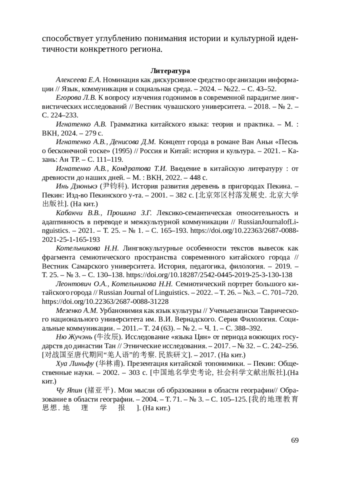 9. Леонтович О.А., Котельникова Н.Н. Семиотический портрет большого китайского города // Russian Journal of Linguistics. - 2022. - Т. 26. - №3. - C. 701-720. DOI: 10.22363/2687-0088-31228 EDN: HMPVSC