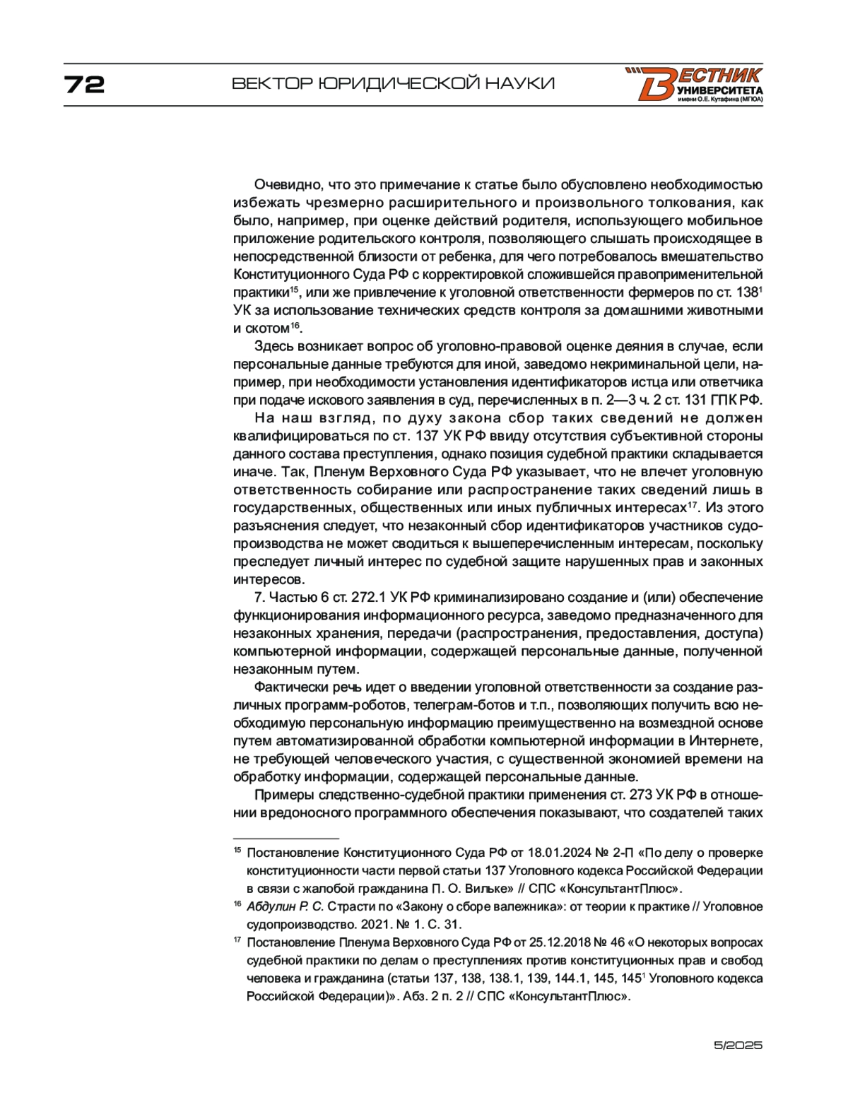Для цитирования: Эстрин А. К вопросу о принципах построения системы уголовной репрессии1 в пролетарском государстве (Извлечение. Вестник Университета имени О. Е. Кутафина (МГЮА). 2025;(5):254-259.