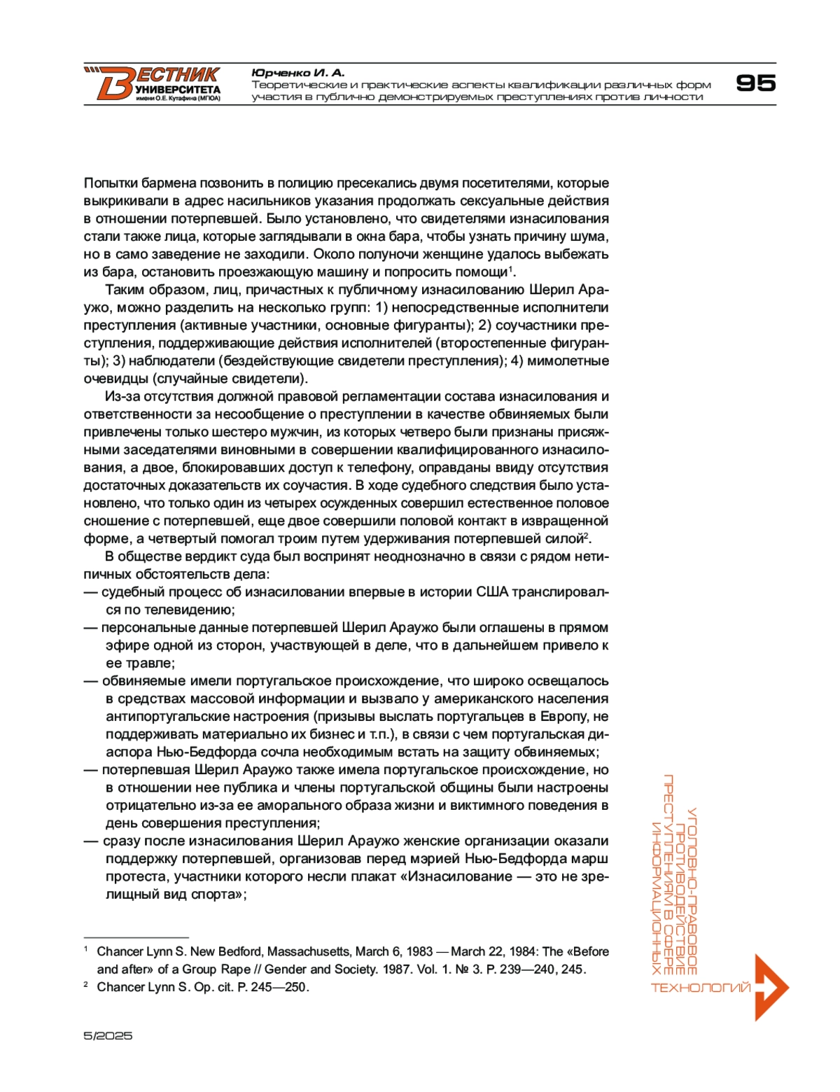 4. Chancer Lynn S. New Bedford, Massachusetts, March 6, 1983 - March 22, 1984: The «Before and after» of a Group Rape // Gender and Society. - 1987. - Vol. 1. - № 3.