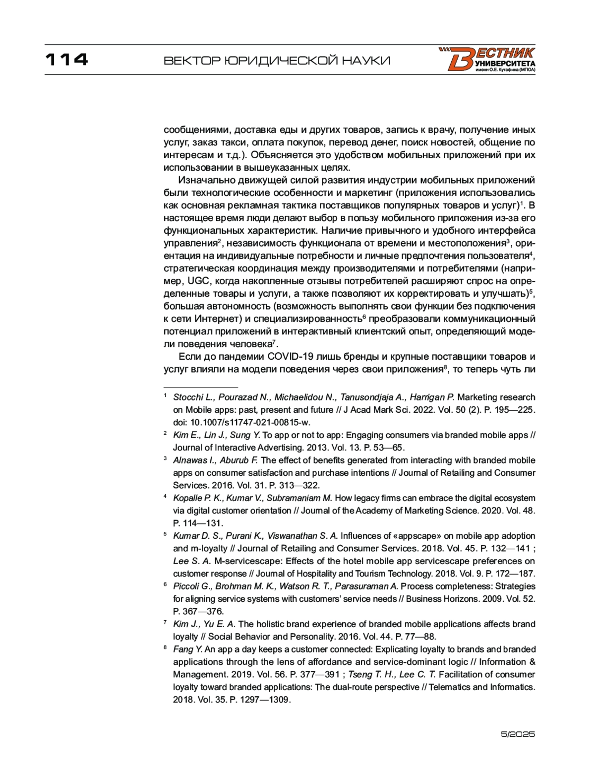 5. Fang Y. An app a day keeps a customer connected: Explicating loyalty to brands and branded applications through the lens of affordance and service-dominant logic // Information & Management. - 2019. - Vol. 56. - P. 377-391.