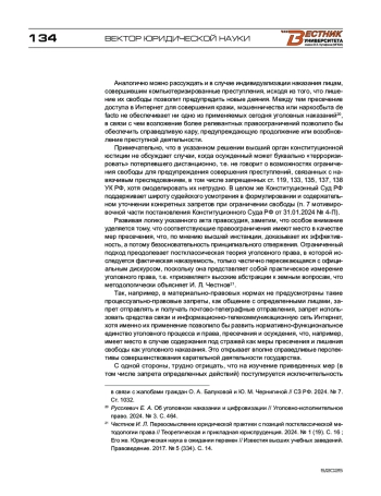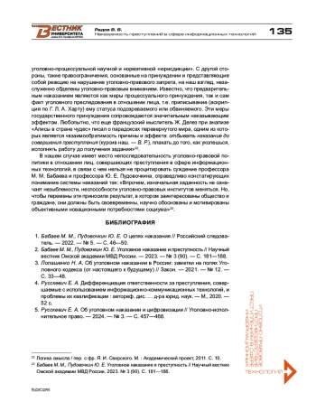 4. Русскевич Е. А. Дифференциация ответственности за преступления, совершаемые с использованием информационно-коммуникационных технологий, и проблемы их квалификации: автореф. дис. … д-ра юрид. наук. - М., 2020. - 52 с. 5. Русскевич Е. А. Об уголовном наказании и цифровизации // Уголовно-исполнительное право. - 2024. - № 3. - С. 457-468.