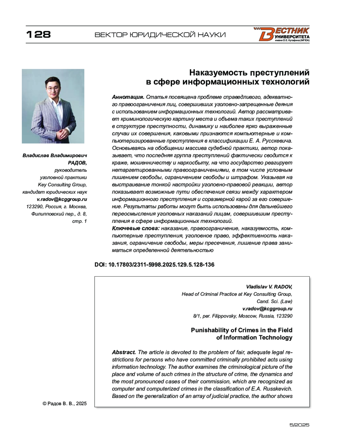 - 10.17803/2311-5998.2025.129.5.128-136