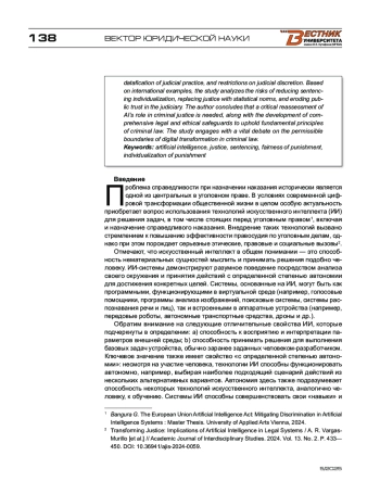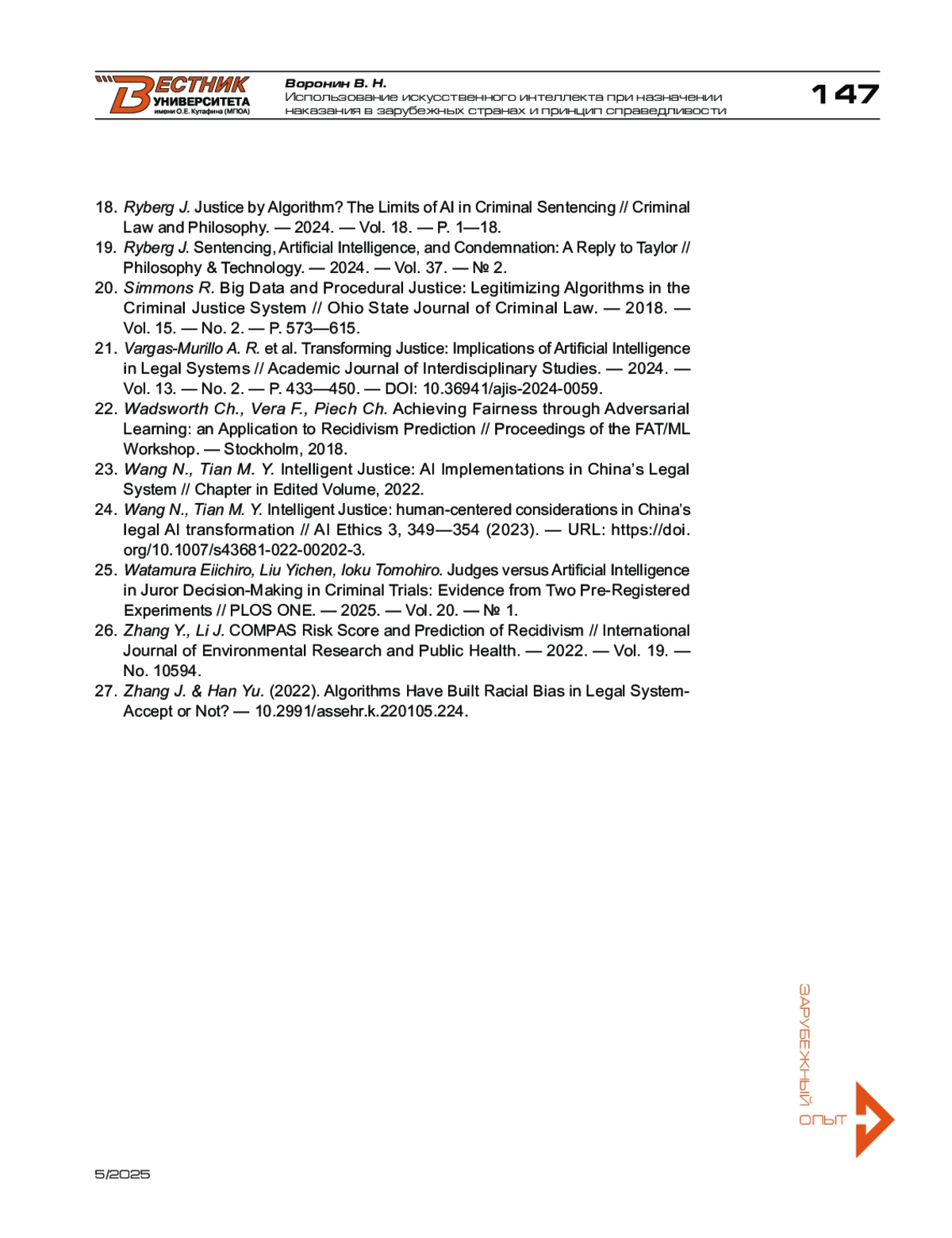18. Ryberg J. Justice by Algorithm? The Limits of AI in Criminal Sentencing // Criminal Law and Philosophy. - 2024. - Vol. 18. - P. 1-18.