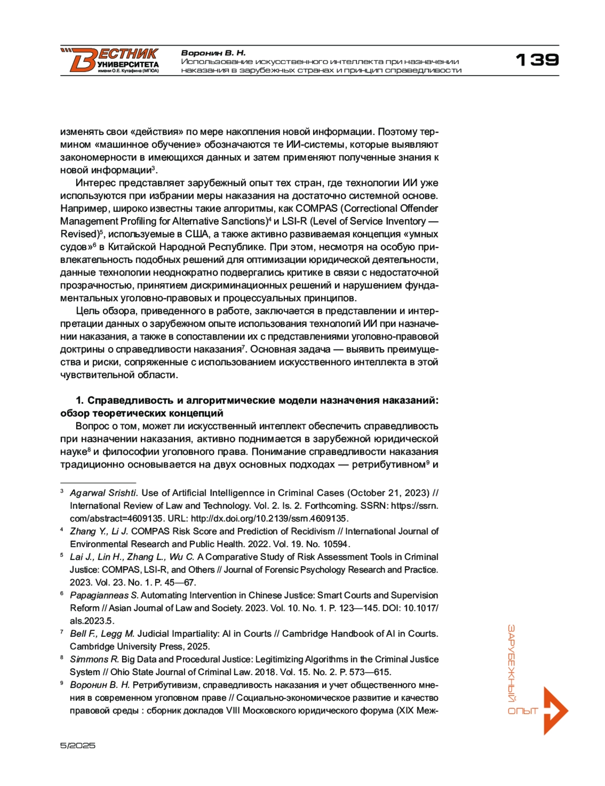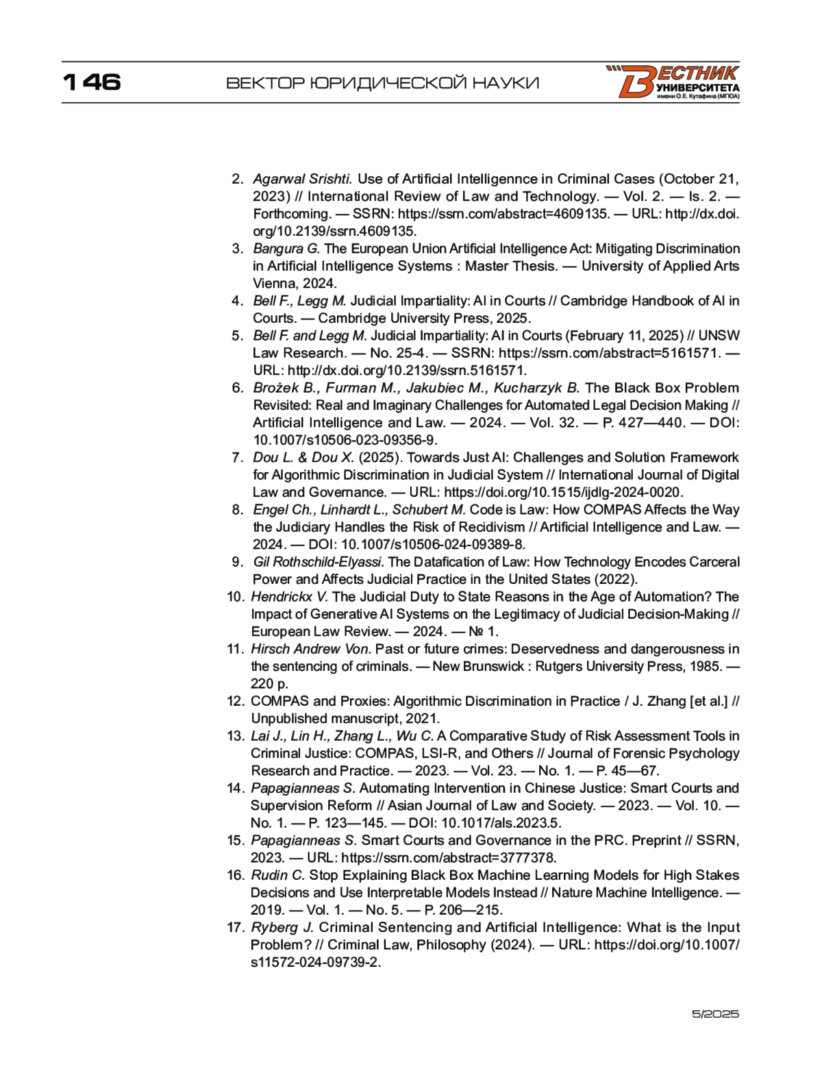 5. Bell F. and Legg M. Judicial Impartiality: AI in Courts (February 11, 2025) // UNSW Law Research. - No. 25-4. - SSRN: https://ssrn.com/abstract=5161571. - URL: https://doi.org/10.2139/ssrn.5161571.