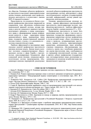 10. 	Новицкий А.А. Профилактика преступлений в Российской Федерации // Вопросы студенческой науки. 2020. № 11 (51). С. 276 - 279. EDN: YIZNMJ