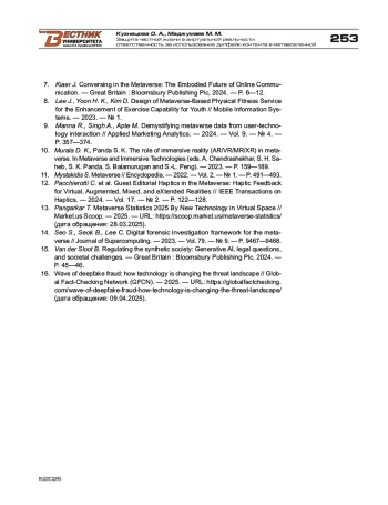 7. Kiaer J. Conversing in the Metaverse: The Embodied Future of Online Communication. - Great Britain: Bloomsbury Publishing Plc, 2024. - P. 6-12.