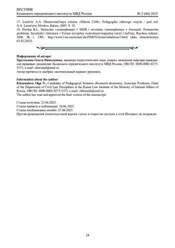 4. Егорова А.Ю. Значение приказа НКО СССР № 227 для институционализации штрафных частей Красной Армии // Юрист-Правовед. 2014. № 2 (63). С. 127 - 130. EDN: SKFYWF