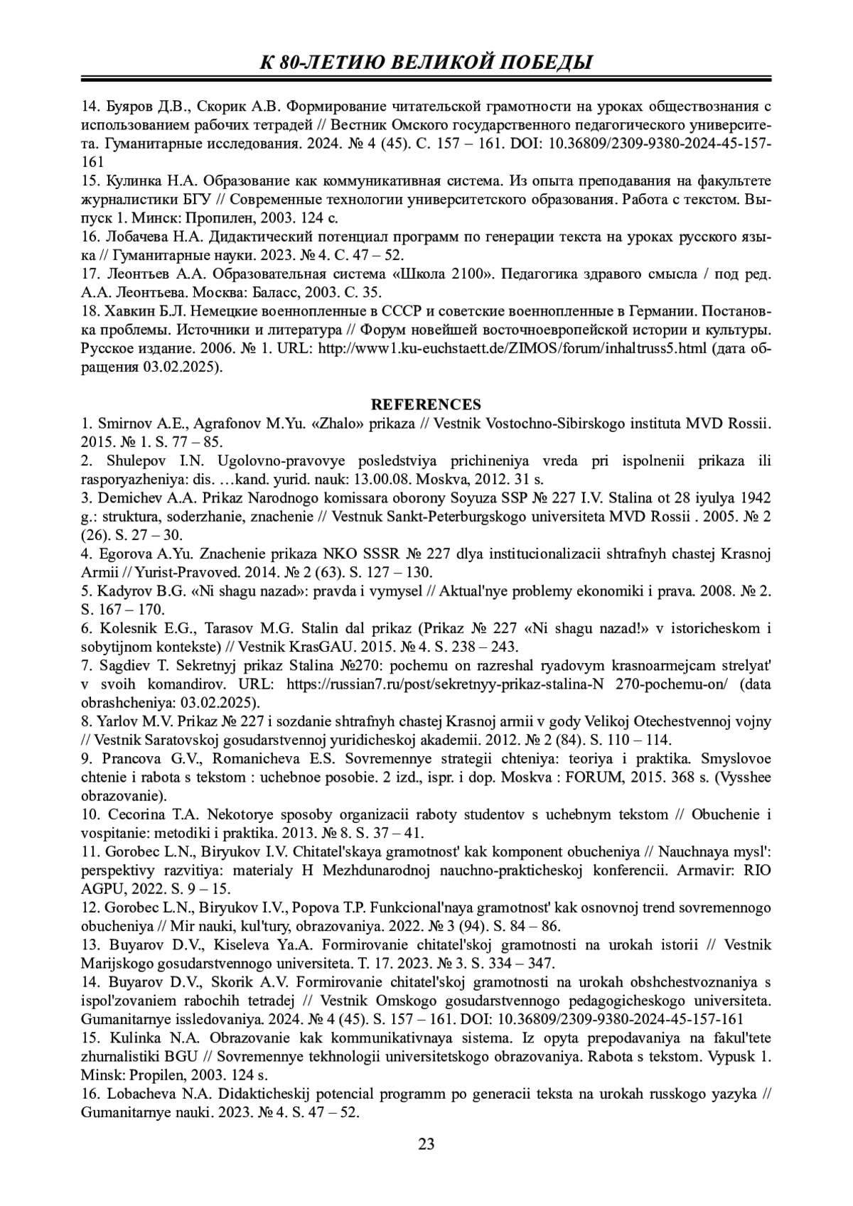 14. Буяров Д.В., Скорик А.В. Формирование читательской грамотности на уроках обществознания с использованием рабочих тетрадей // Вестник Омского государственного педагогического университета. Гуманитарные исследования. 2024. № 4 (45). С. 157 - 161. DOI: 10.36809/2309-9380-2024-45-157-161 EDN: GSODTI