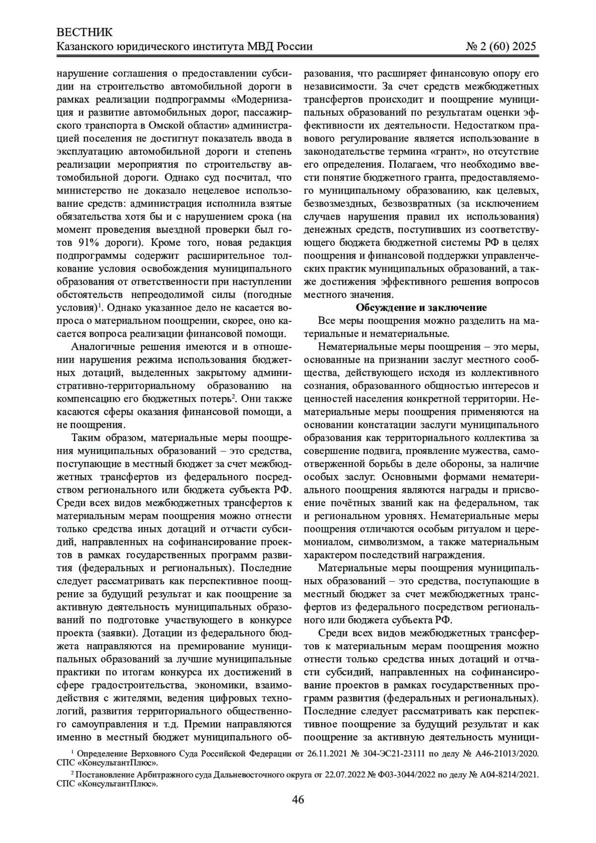 Материалы и методы: автором рассмотрена совокупность норм конституционного, административного и бюджетного права, формирующих публично-поощрительные правоотношения, представлены научно-теоретические положения ученых и материалы судебной практики по обозначенной проблематике; использовались общенаучные методы, а также специальные: структурно-функциональный, формально-юридический.