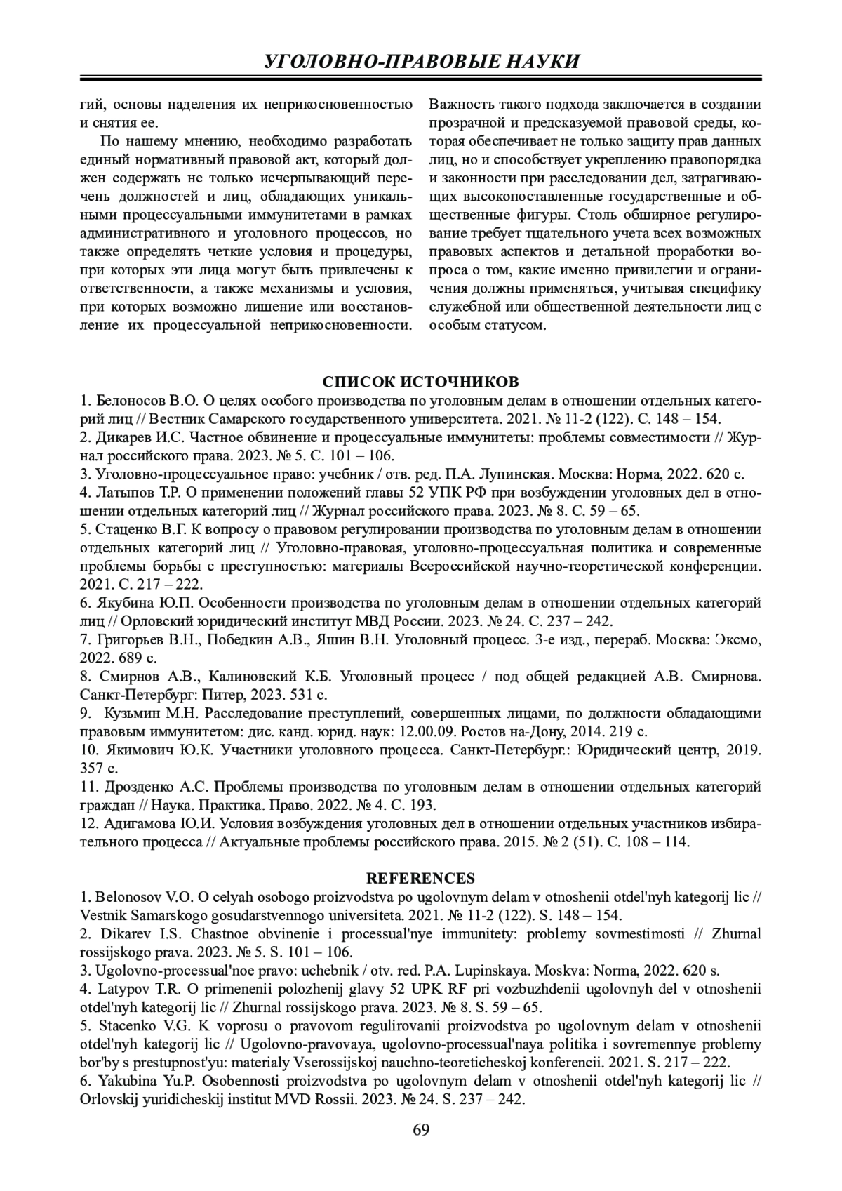 Ключевые фразы: уголовное судопроизводство, особые категории лиц, справедливость, законность, УГОЛОВНОЕ ПРЕСЛЕДОВАНИЕ, производство по уголовным делам