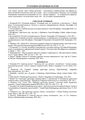 8. 	Чердынцева И.А. Типы уголовного процесса: история и современность // Вестник Омского университета. Серия “Право”. 2005. № 3 (4). С. 258 - 261.