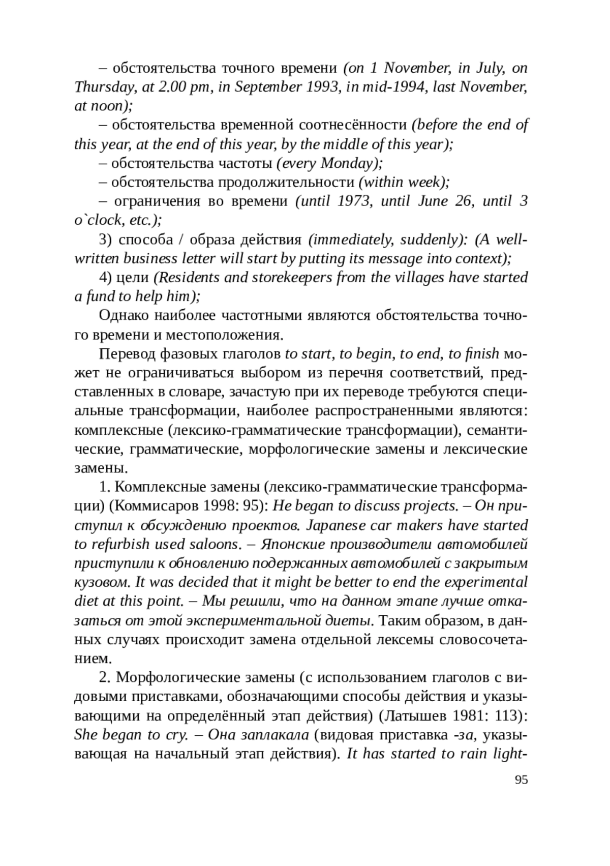 Английский фазовые глаголы используются главным образом в переходной и непереходной моделях предложения. В предложении данные глаголы в большинстве случаев выполняют функцию простого глагольного сказуемого; однако в ряде случаев они являются компонентом составного сказуемого. В статье перечислены семантические разряды существительных, выступающих в функциях субъекта и объекта при вышеупомянутых глаголах. При переводе предложений с фазовыми глаголами на русский язык применяются различные способы и приемы.