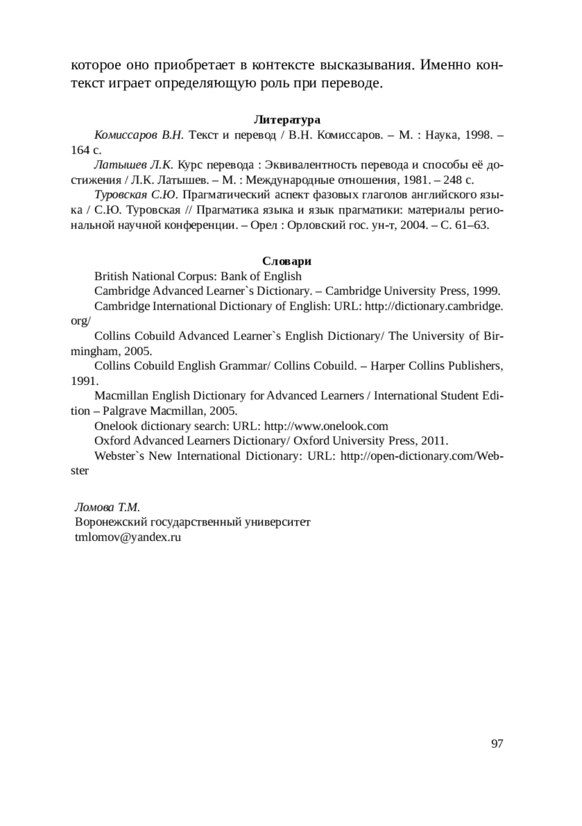 1. 	Комиссаров В.Н. Текст и перевод / В.Н. Комиссаров. - М.: Наука, 1998. -164 с.
