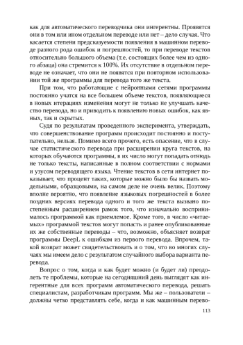 Если говорить о программах, работающих с нейросетями (а сегодня это большинство распространенных профессиональных программ автоматического перевода), то и вторая причина маловероятна: программы обучаются на текстах, охватывающих самые разные сферы окружающей действительности. Такие ошибки могут возникнуть только при переводе каких-то узкоспециальных текстов, тогда как типичные «машинные» ошибки обнаруживаются в любых переводах.