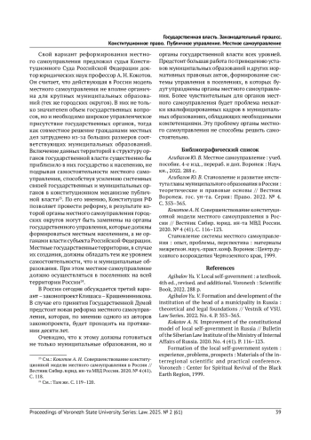 3. 	Кокотов А. Н. Совершенствование конституционной модели местного самоуправления в России // Вестник Сибир. юрид. ин-та МВД России. 2020. № 4 (41). С. 116-123.