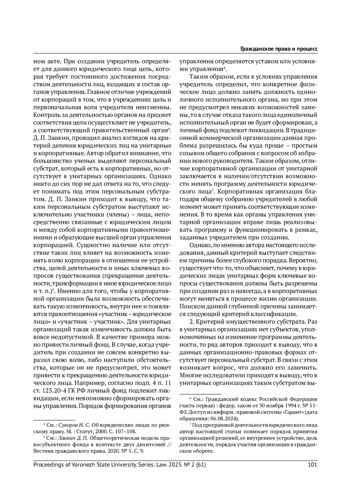 2. 	Заикин Д. П. Общетеоретическая модель правосубъектного фонда в контексте двух дихитомий // Вестник гражданского права. 2020. № 5. С. 7-72. EDN: EFMLMT