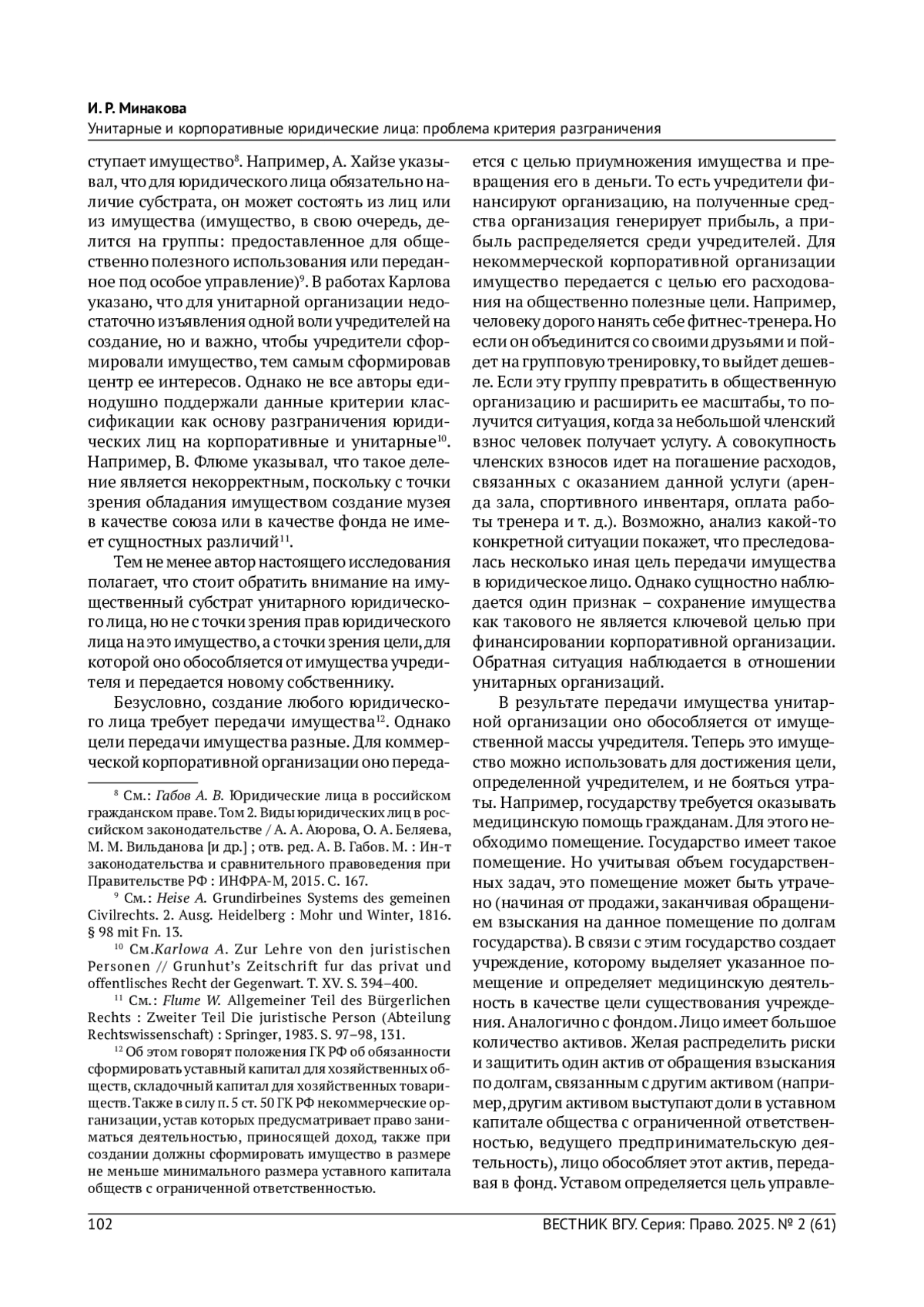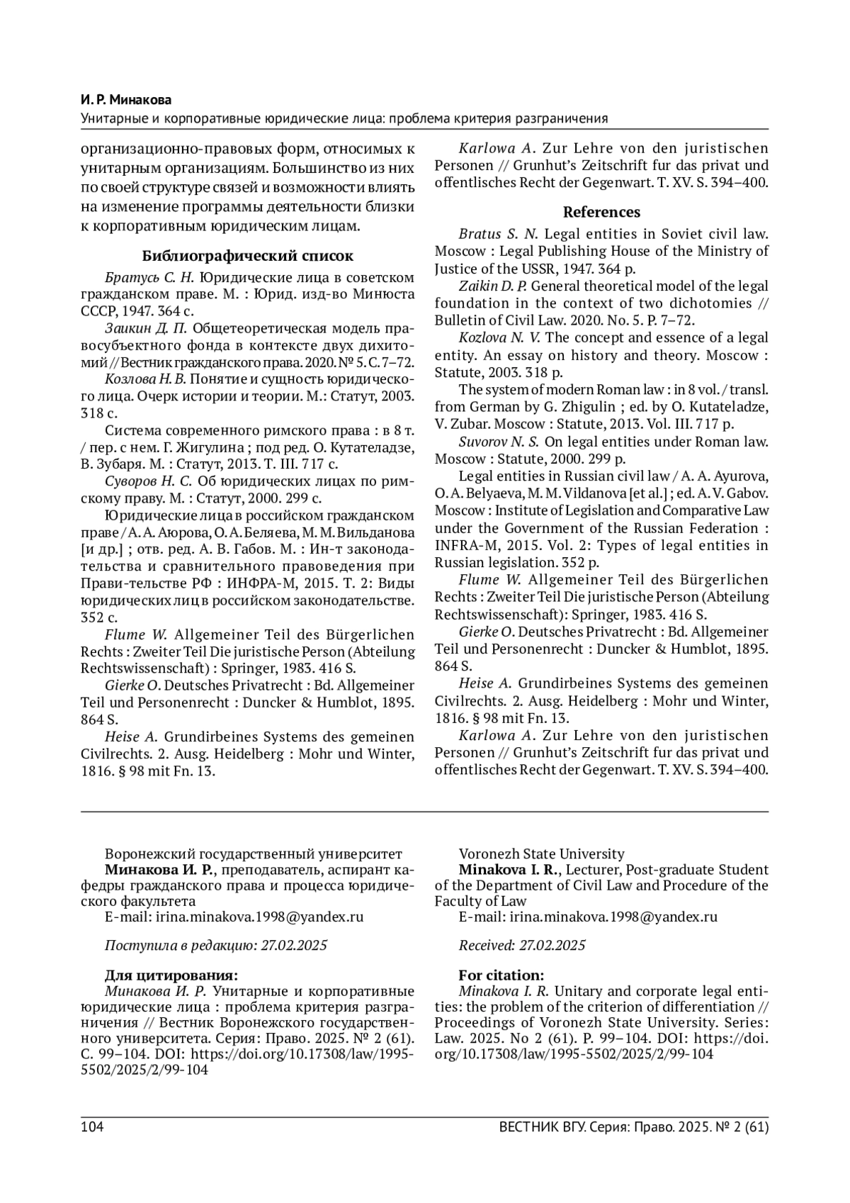 10. 	Karlowa A. Zur Lehre von den juristischen Personen // Grunhut’s Zeitschrift fur das privat und offentlisches Recht der Gegenwart. T. XV. S. 394-400.