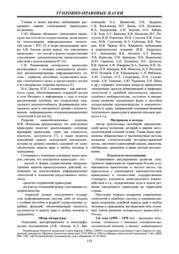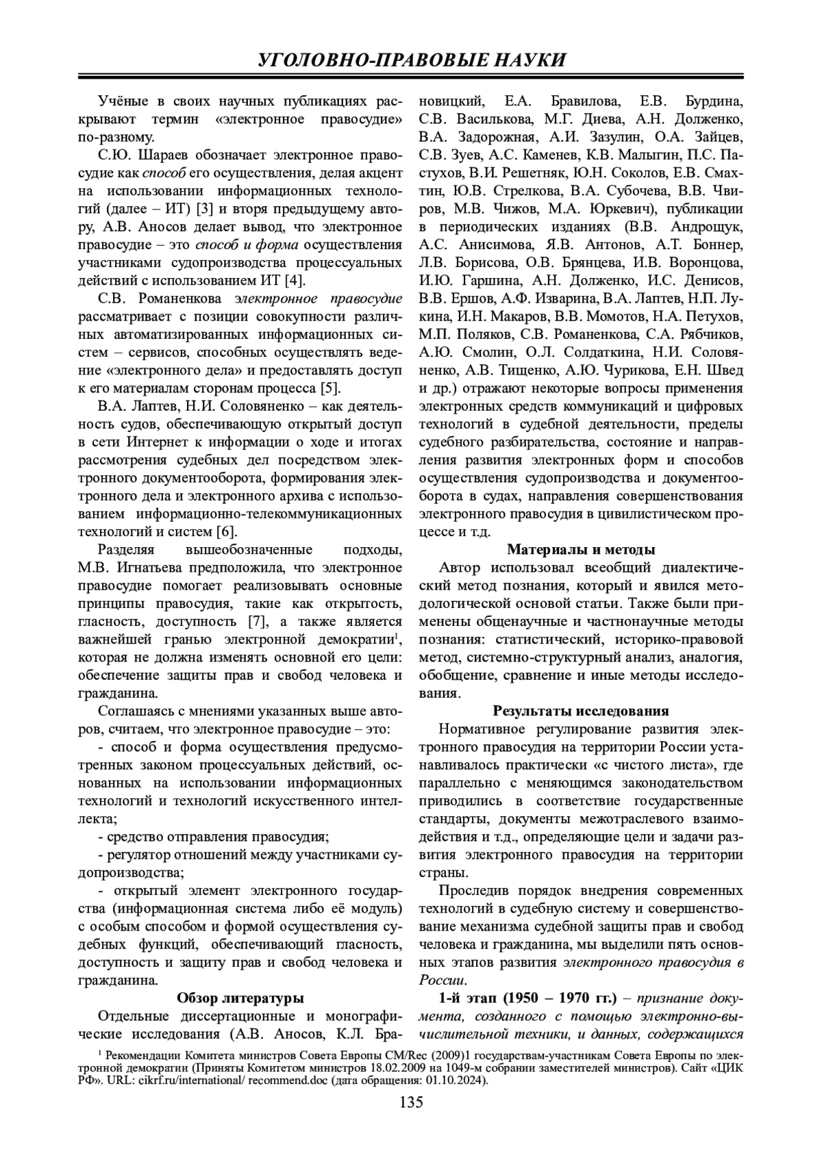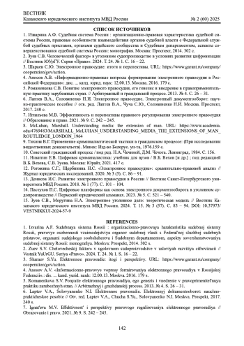 5. 	Романенкова С.В. Понятие электронного правосудия, его генезис и внедрение в правоприменительную практику зарубежных стран. // Арбитражный и гражданский процесс. 2013. № 4. С. 26 - 31. EDN: PYJTEN