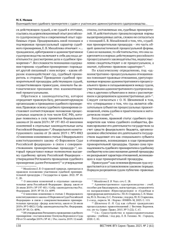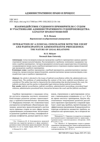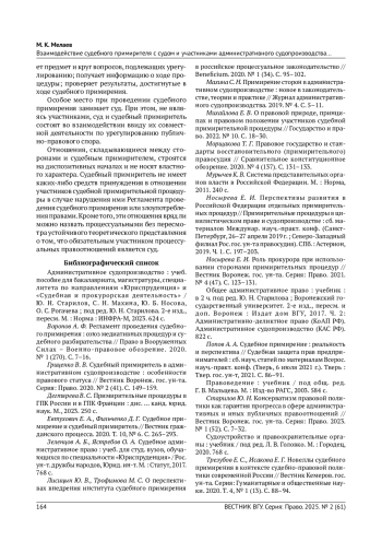 9. 	Михайлова Е. В. О правовой природе, принципах и правовом положении участников судебной примирительной процедуры // Государство и право. 2022. № 10. С. 18-30. EDN: RIPISJ
