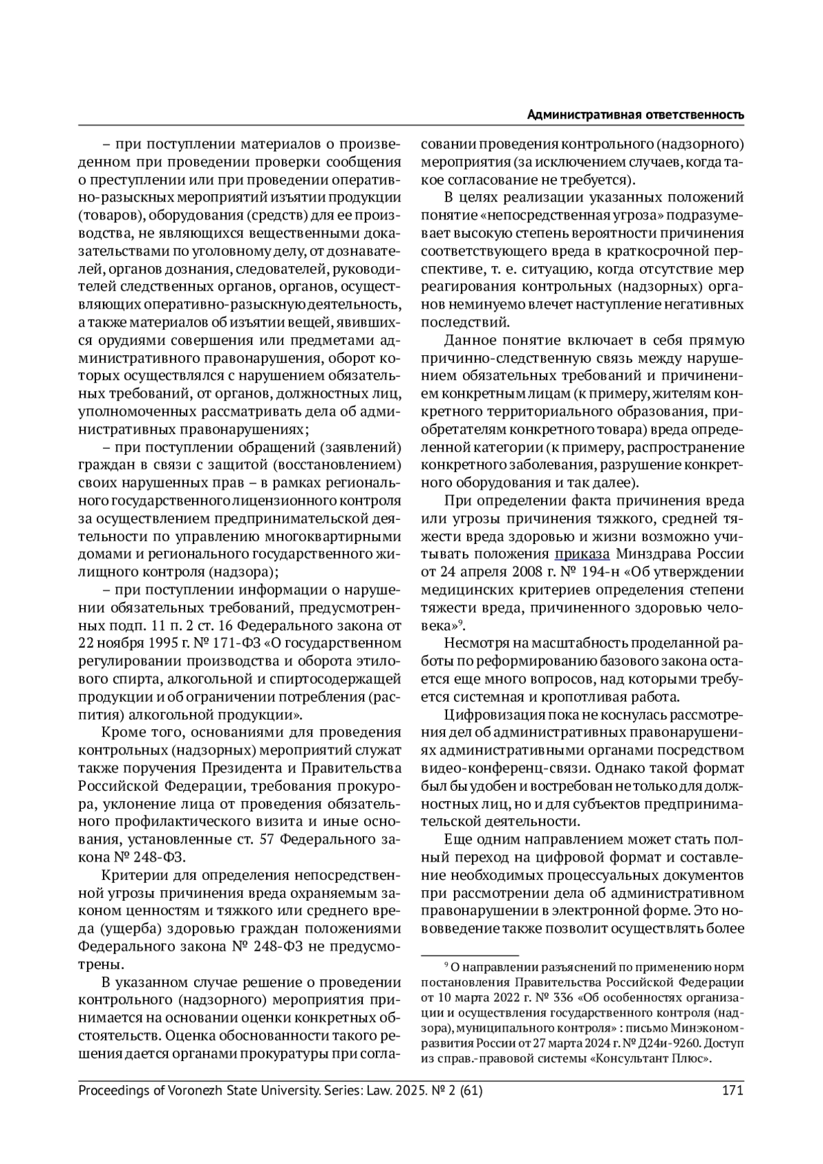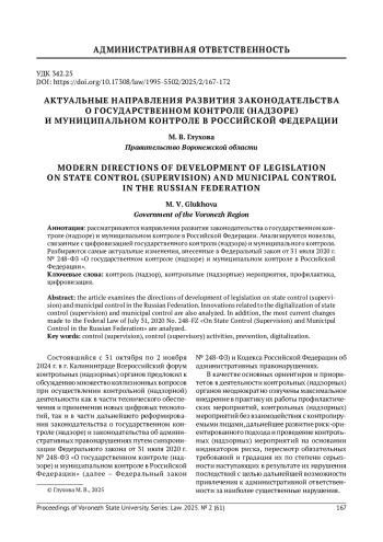 Рассматриваются направления развития законодательства о государственном контроле (надзоре) и муниципальном контроле в Российской Федерации. Анализируются новеллы, связанные с цифровизацией государственного контроля (надзора) и муниципального контроля. Разбираются самые актуальные изменения, внесенные в Федеральный закон от 31 июля 2020 г. № 248-ФЗ «О государственном контроле (надзоре) и муниципальном контроле в Российской Федерации».