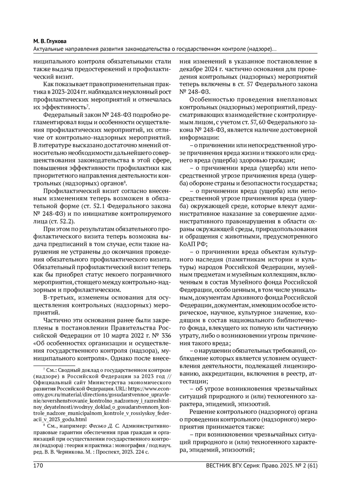 2. 	Фесько Д. С. Административно-правовые гарантии обеспечения прав граждан и организаций при осуществлении государственного контроля (надзора): теория и практика: монография / под науч. ред. В. В. Черникова. М.: Проспект, 2023. 224 с. EDN: PKAEOL