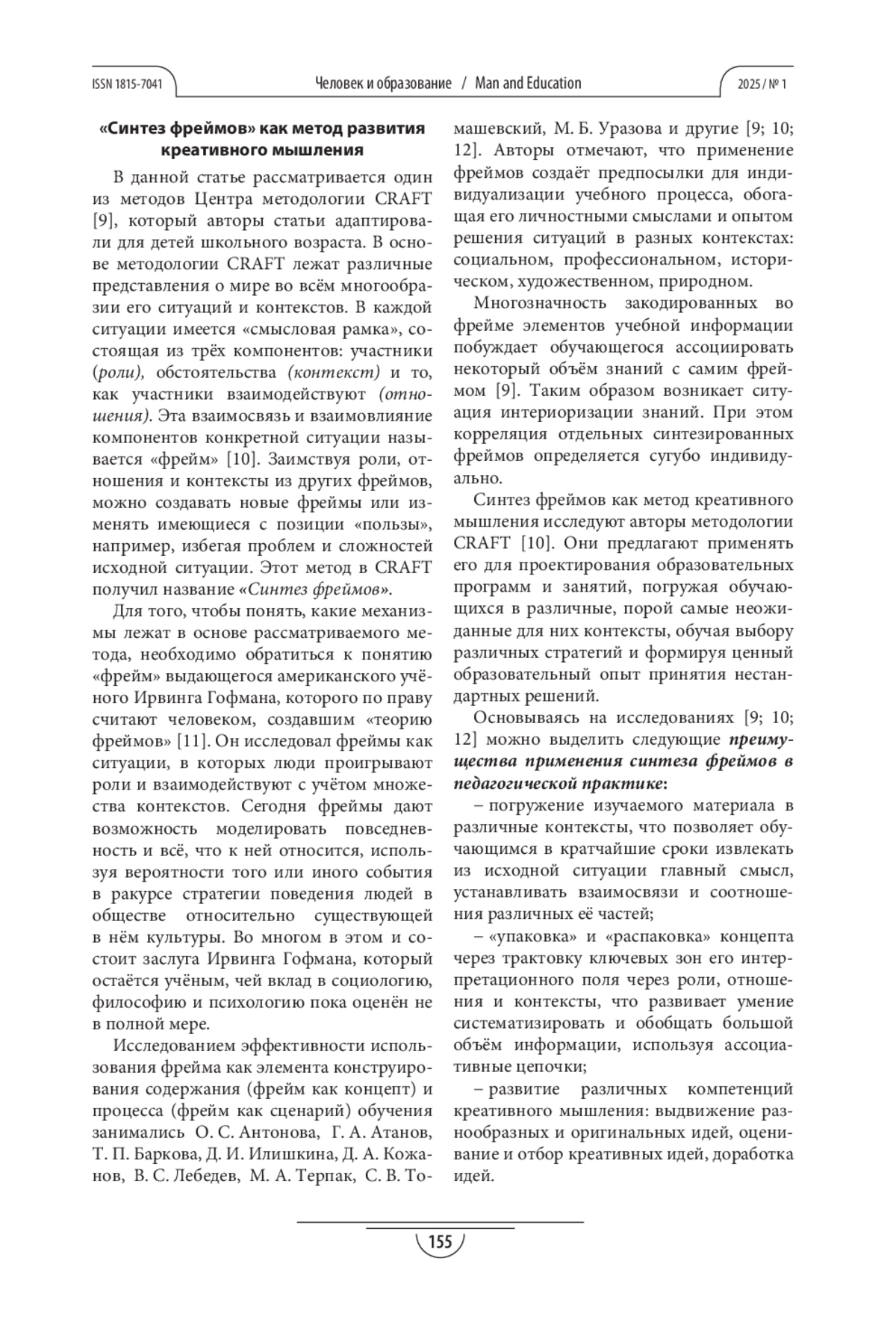 12. Лобашев В. Д., Талых А. А. Фреймовый подход в технологическом образовании // Вестник Мининского университета. 2020. Т. 8. № 2. С. 2.