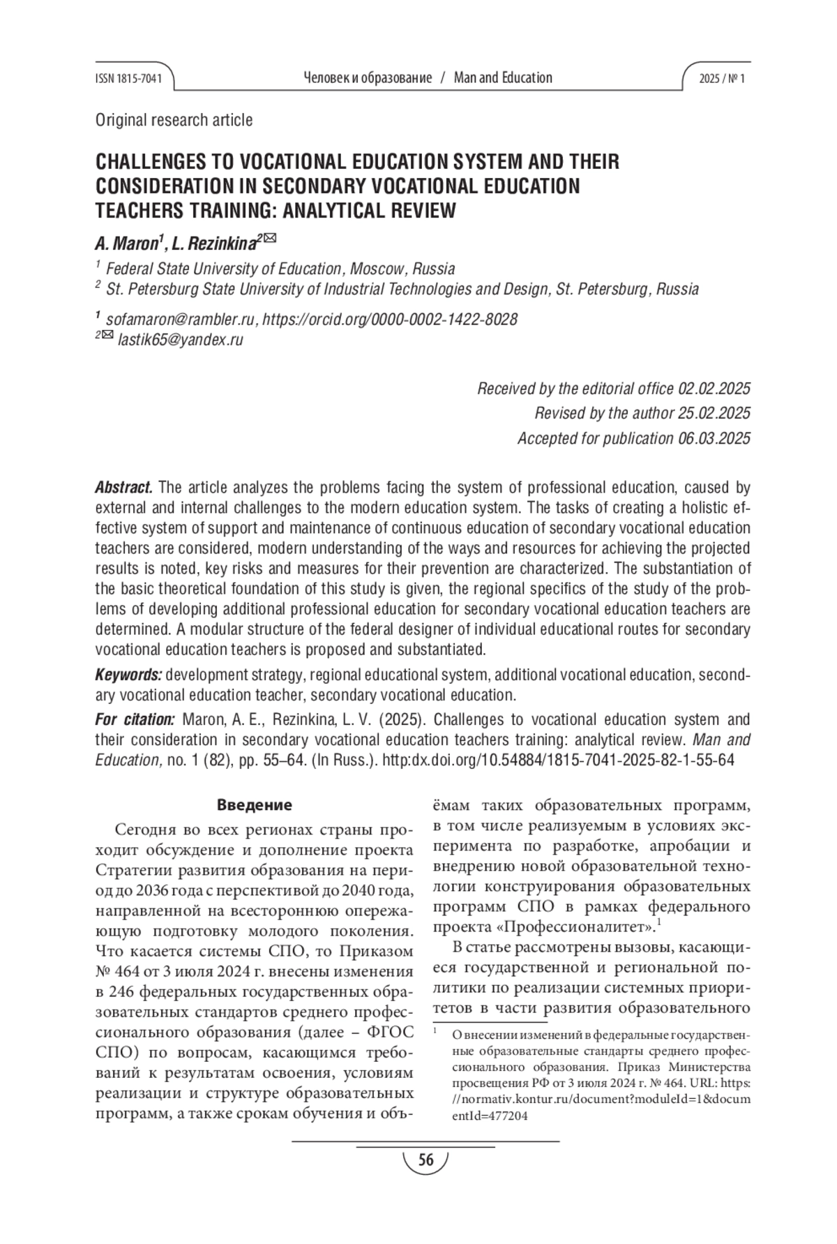 2. Блинов В. И., Есенина Е. Ю., Сергеев И. С. Готовность отечественной системы СПО к достижению технологического суверенитета: результаты исследования // Профессиональное образование и рынок труда. 2023. Т. 11. № 2(53). С. 6-31.