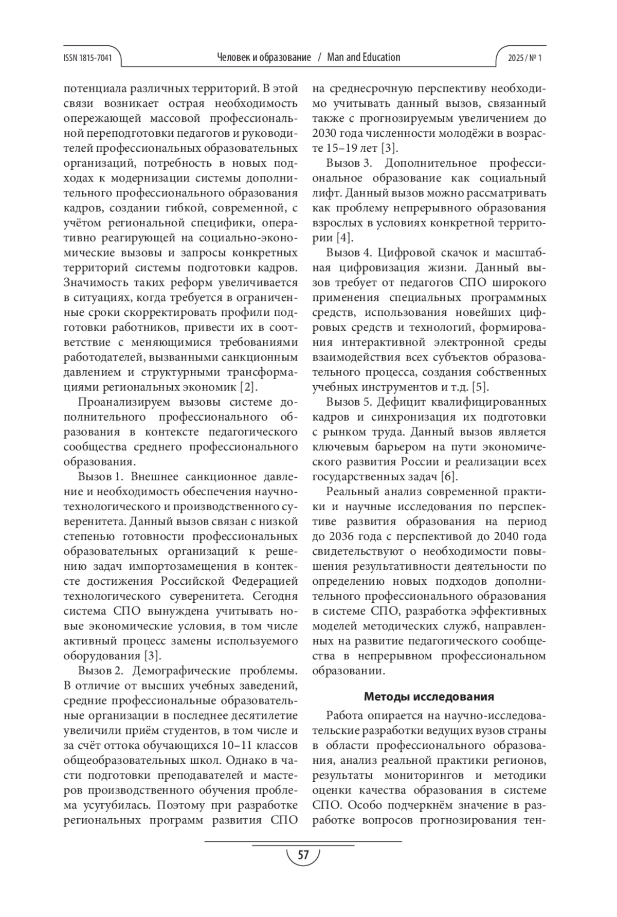 7. Сергеев И. С., Блинов В. И., Куртеева Л. Н. Основные параметры прогнозирования состояний системы профессионального образования и обучения в процессе модернизации // Профессиональное образование и рынок труда. 2024. Т. 12, № 1(56). С. 6-28.