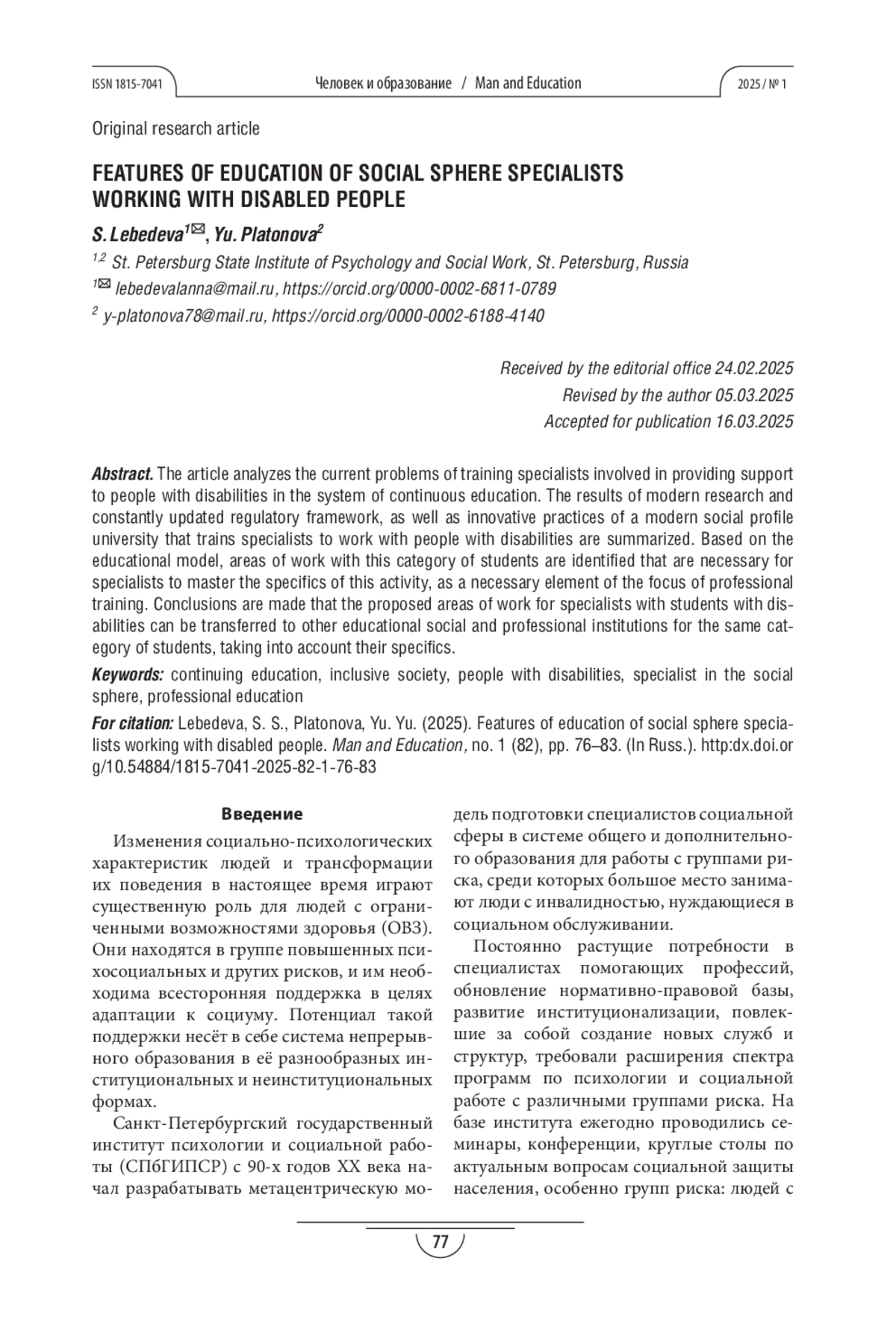 2. Платонова Ю. Ю. Перспективы развития образовательной экосистемы для людей с инвалидностью / Социально-психологические проблемы современного общества: пути решения. Сборник научных статей; под науч. ред. Е. Л. Михайловой. Витебск: Витебский государственный университет им. П. М. Машерова, 2022. С. 59-65.