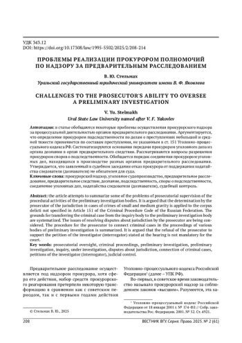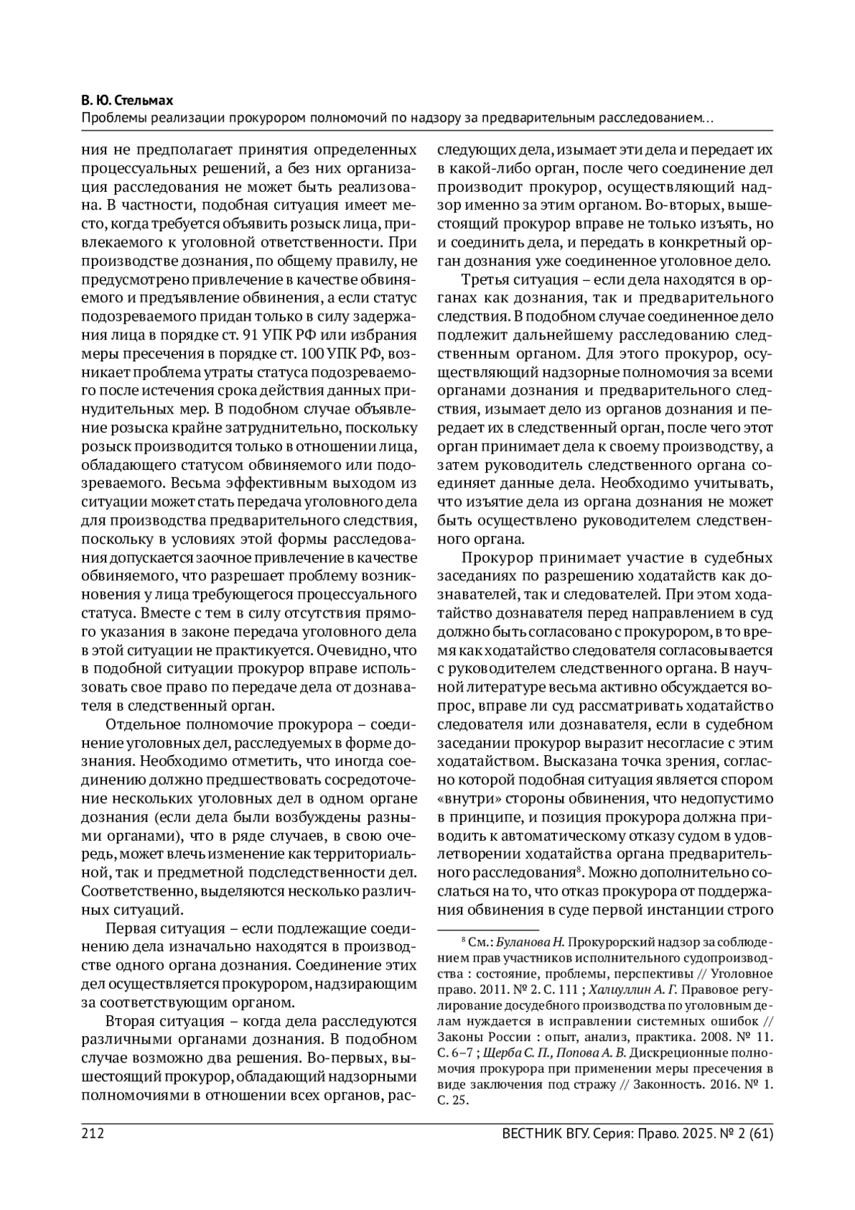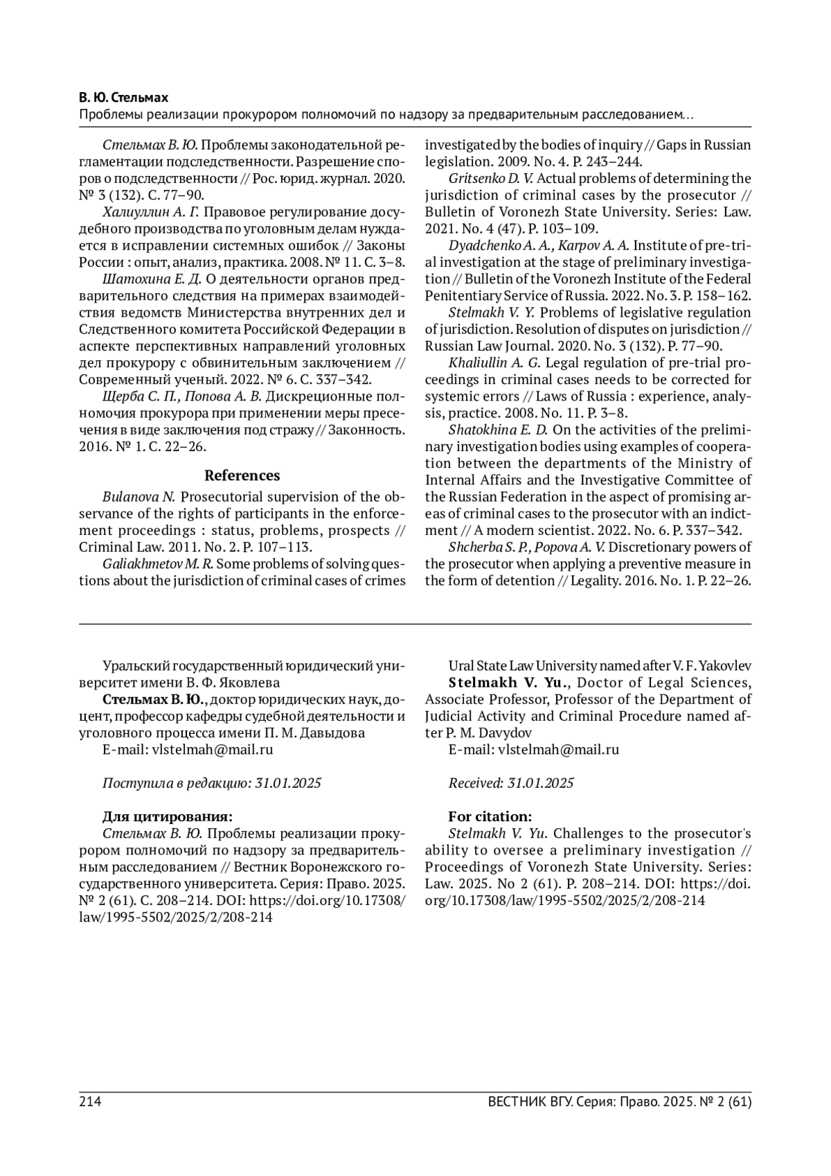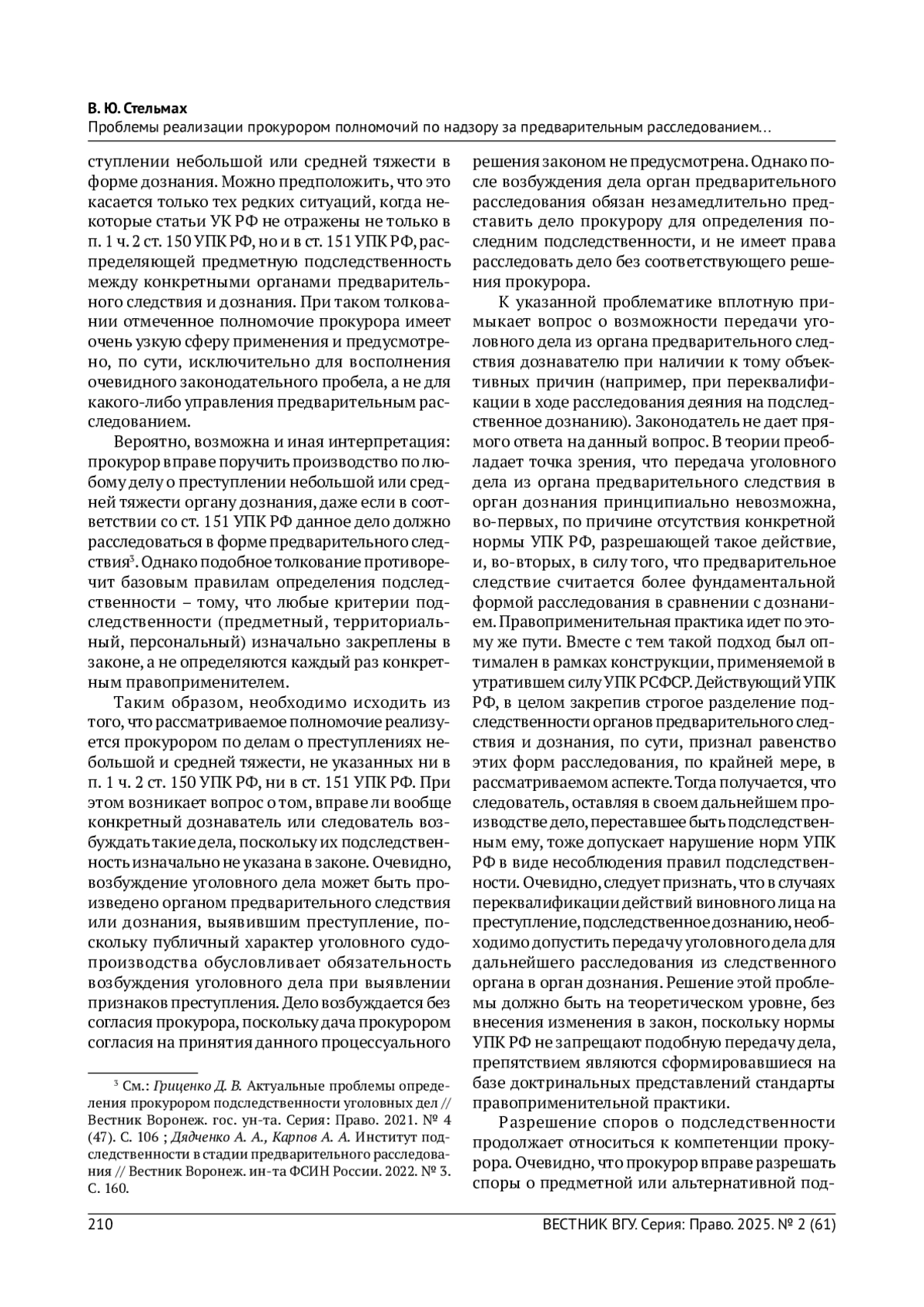5. 	Стельмах В. Ю. Проблемы законодательной регламентации подследственности. Разрешение споров о подследственности // Рос. юрид. журнал. 2020. № 3 (132). С. 77-90.