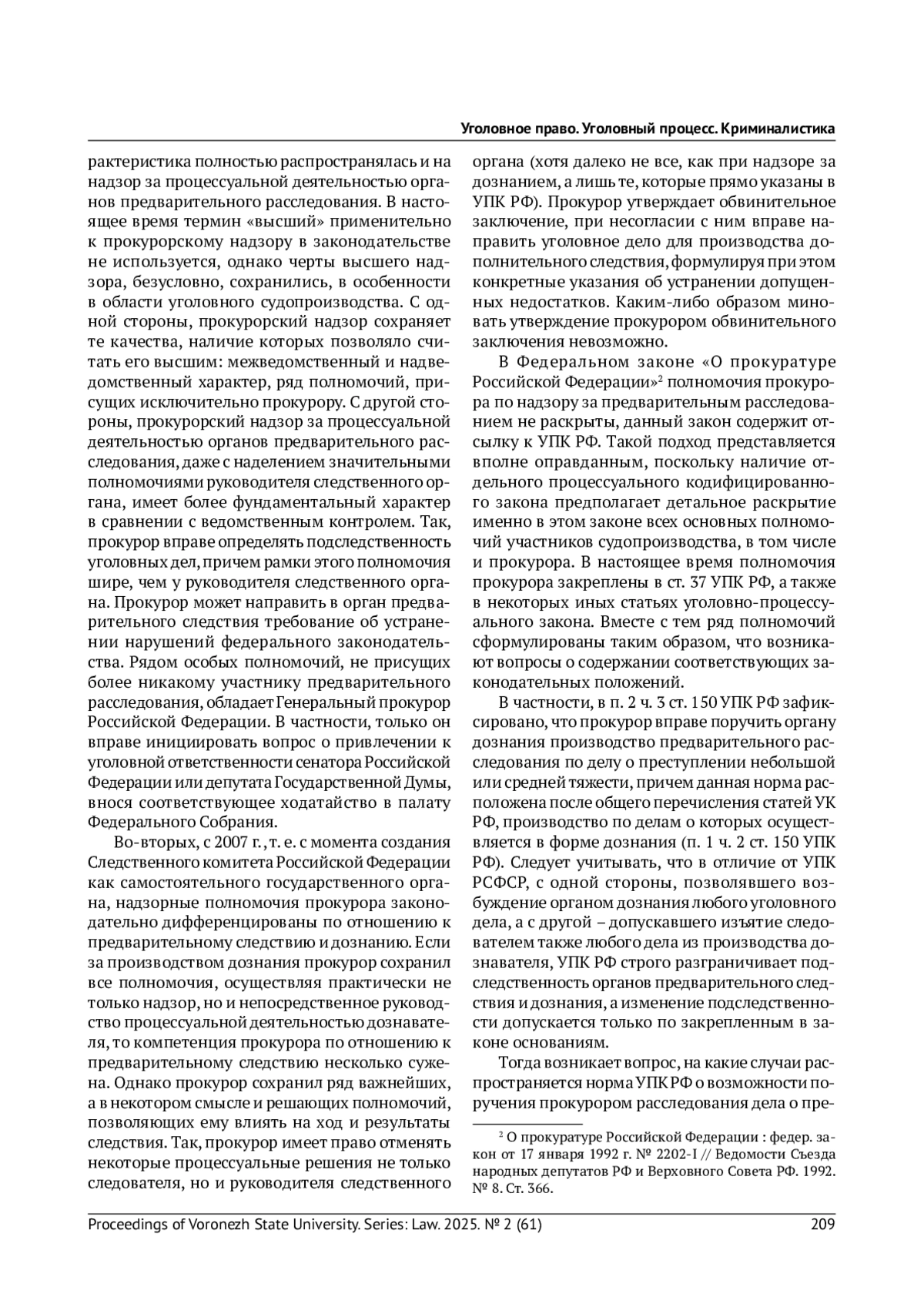 3. 	Гриценко Д. В. Актуальные проблемы определения прокурором подследственности уголовных дел // Вестник Воронеж. гос. ун-та. Серия: Право.2021. № 4 (47). С. 103-109.
