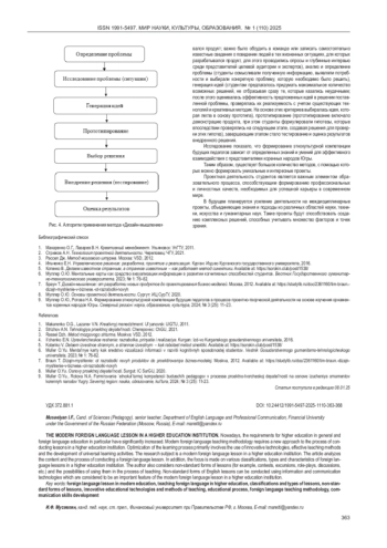 5. 	Левченко В.А. Специфика современного урока иностранного языка. Art Logos. 2021; № 3 (16): 100-104. EDN: KLEJIN