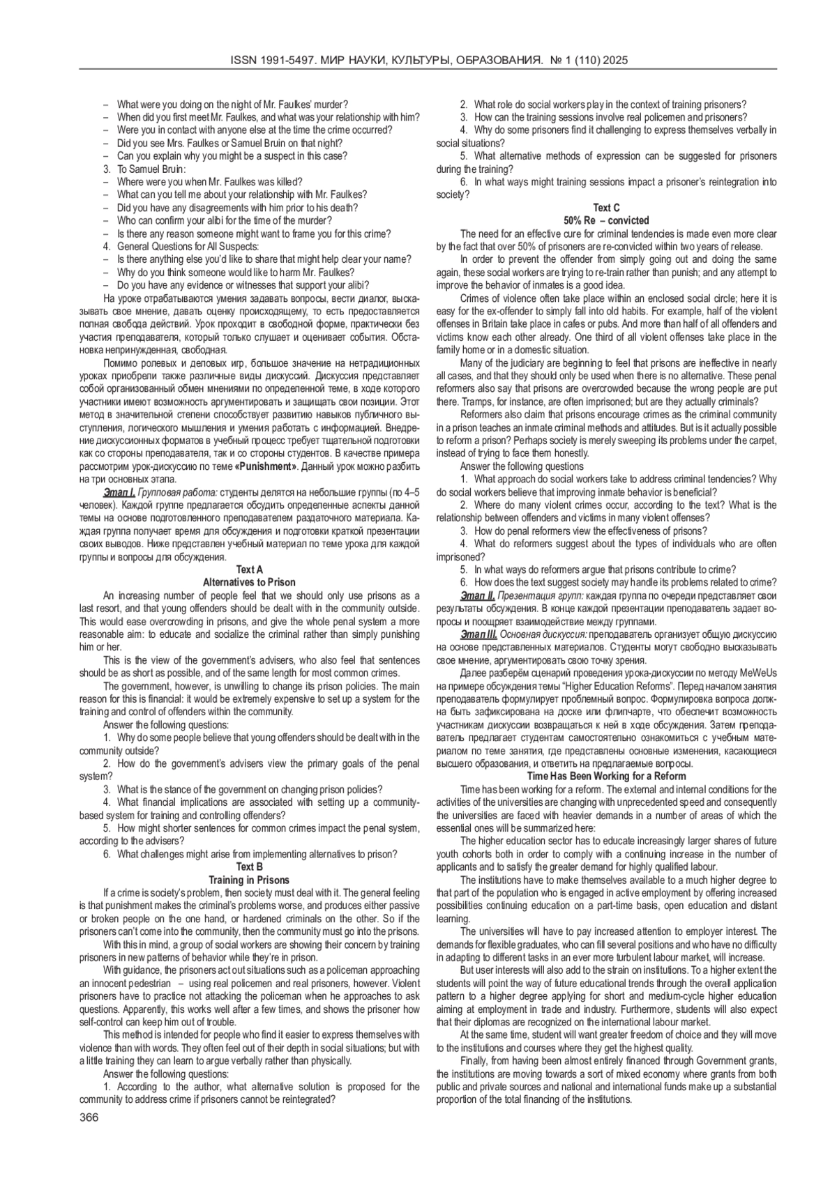 В представленной работе анализируется специфика профессионального коммуникативного подхода в обучении будущих юристов, методы и подходы к развитию юридико-коммуникативной компетентности у студентов юридических вузов. Основная идея статьи заключается в том, что юридико-коммуникативная компетентность представляет собой важный показатель успеха будущих юристов в профессиональной среде. Авторы отмечают, что для формирования этой компетентности необходимо учитывать, как профессиональные знания и навыки, так и коммуникативные способности и ценностные ориентации студентов. Статья подчеркивает важность интегративной модели обучения, которая объединяет теоретические и практические аспекты, а также акцентирует внимание на необходимости использования междисциплинарного подхода в преподавании, охватывающего психологию, конфликтологию, риторику и другие дисциплины. Комплексный подход к развитию юридико-коммуникативной компетентности способствует формированию профессионализма будущих юристов. Логическим завершением работы является выделение условий, необходимых для успешной реализации модели юридико-коммуникативной компетентности, таких как правовая грамотность, коммуникативные навыки, умение вести переговоры и соблюдать этические нормы и др. Результаты исследования способствуют дополнению и обновлению научных представлений о важности коммуникативной компетентности для юристов и служат практическим руководством для педагогов, стремящихся повысить качество подготовки будущих специалистов в области права.